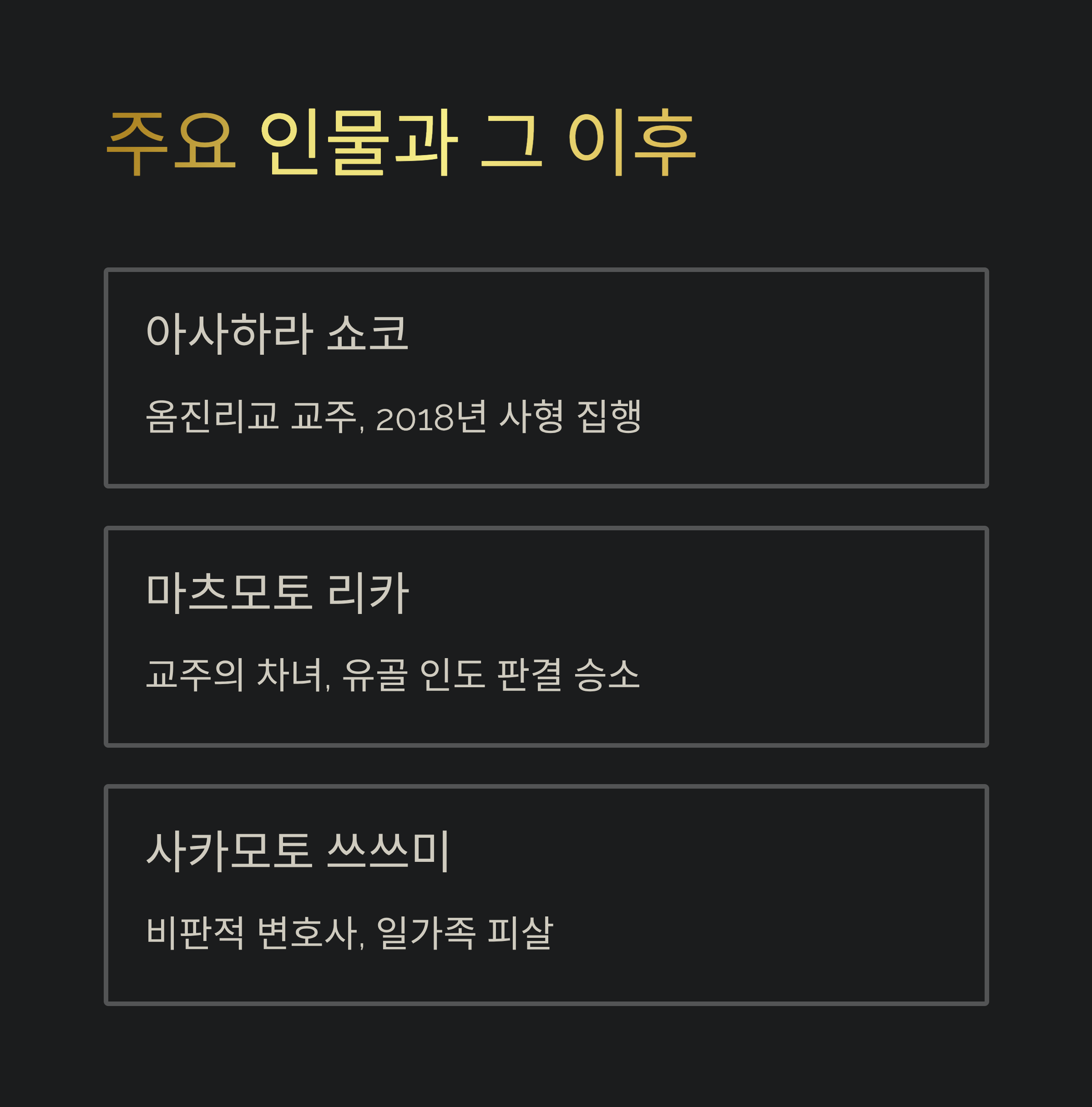 | 마츠모토 리카 | 교주의 차녀 | 유골 인도 판결 승소 |