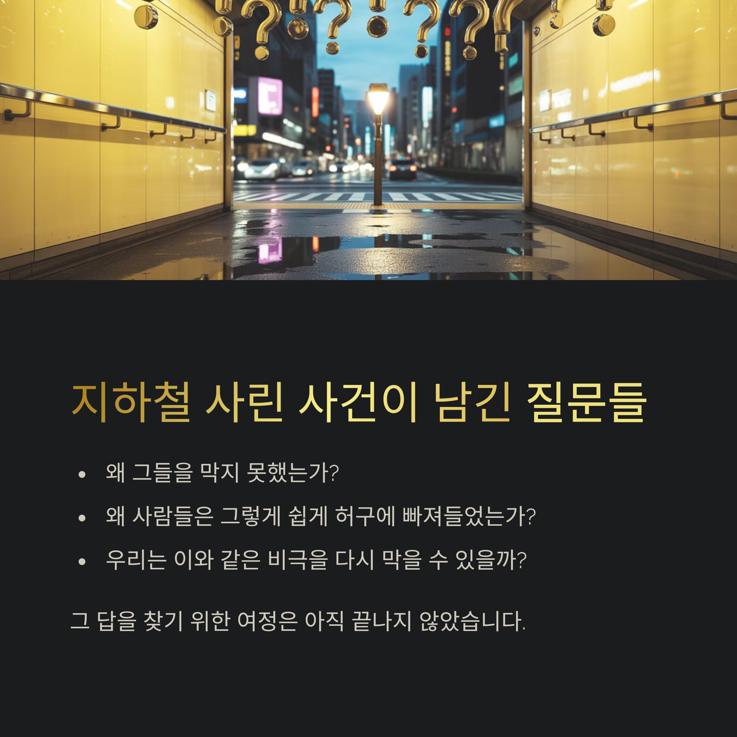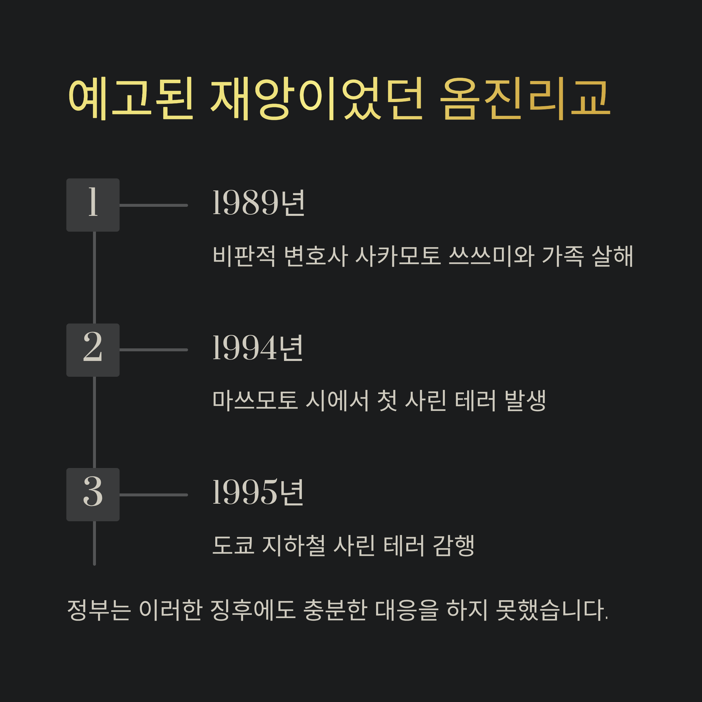 옴진리교 사건은 단지 일본의 일이 아닙니다. 시스템을 무너뜨리는 집단 맹신, 정부의 무능, 그리고 피해자 구제의 어려움은 한국 사회에도 여전히 유효한 화두입니다.