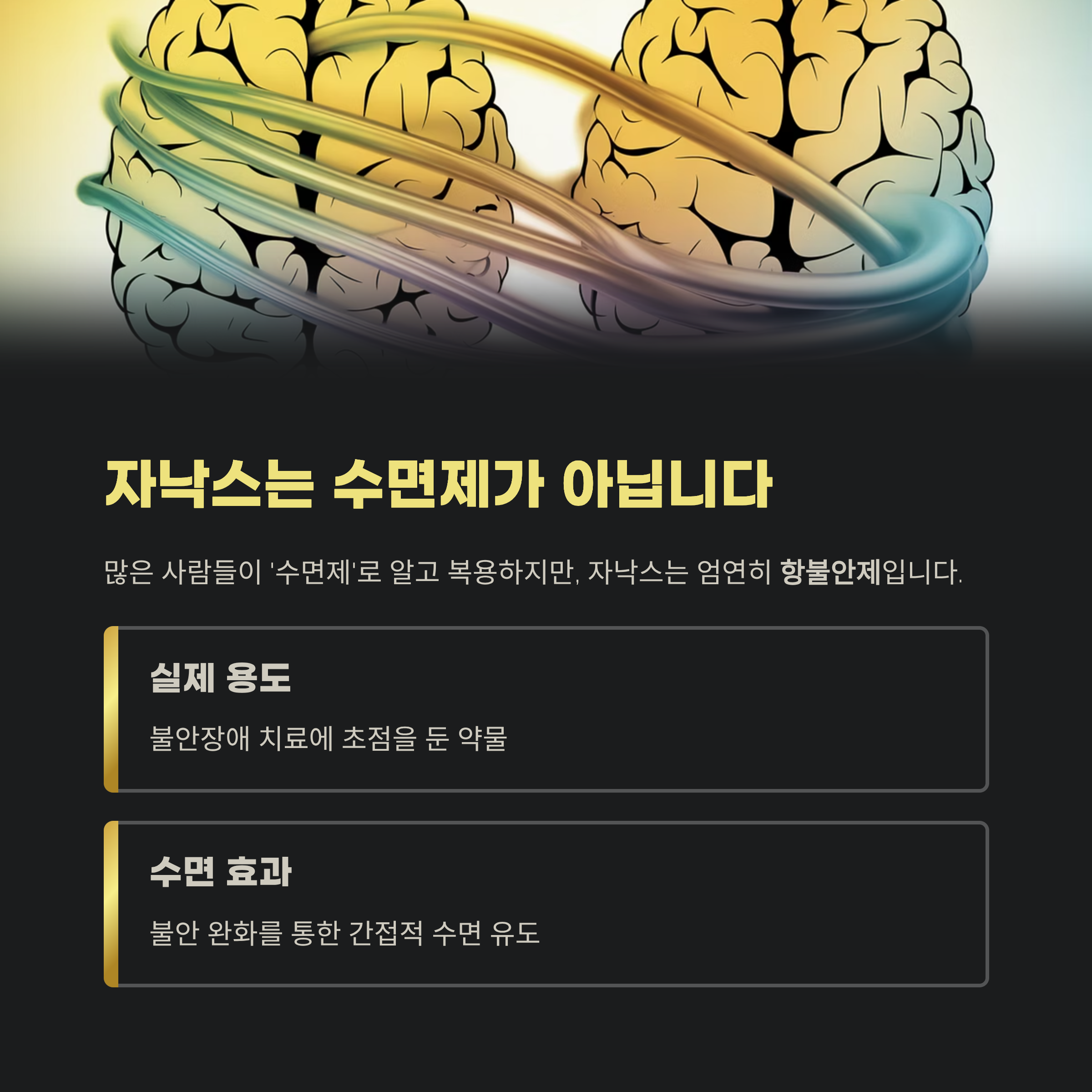 불안 완화를 통해 수면을 유도하는 방식이기 때문에, 원래는 불면증보다 불안장애 치료에 초점을 둔 약입니다.