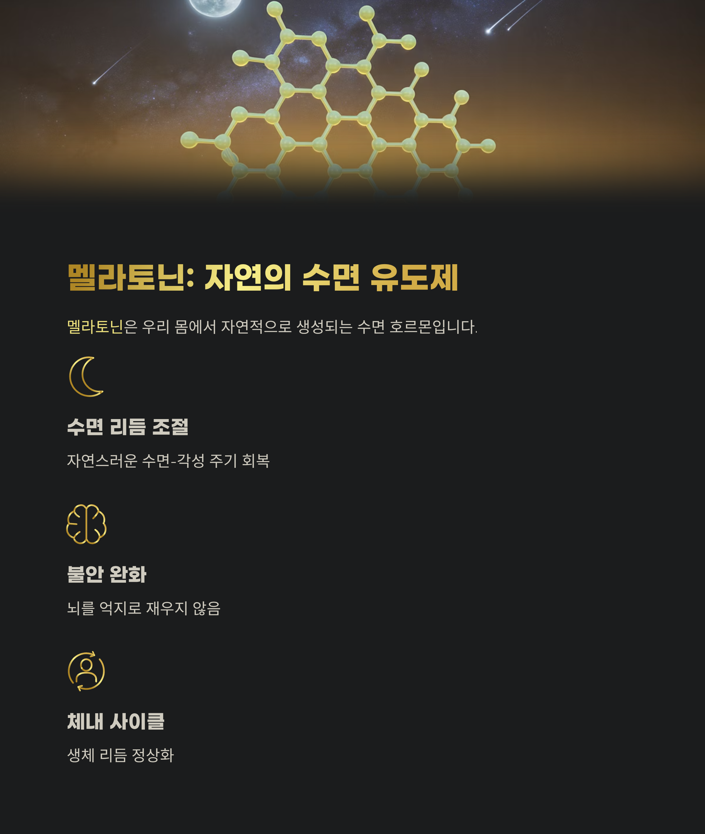 자연스럽게 잠드는 데 도움을 주는 멜라토닌은 우리 몸에서 생성되는 호르몬입니다.