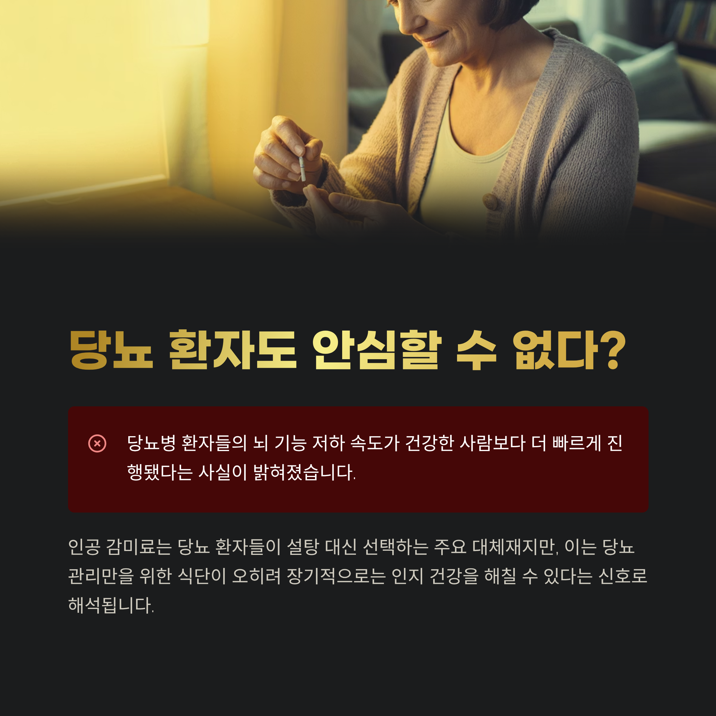 이는 당뇨 관리만을 위한 식단이 오히려 장기적으로는 인지 건강을 해칠 수 있다는 신호로 해석됩니다.