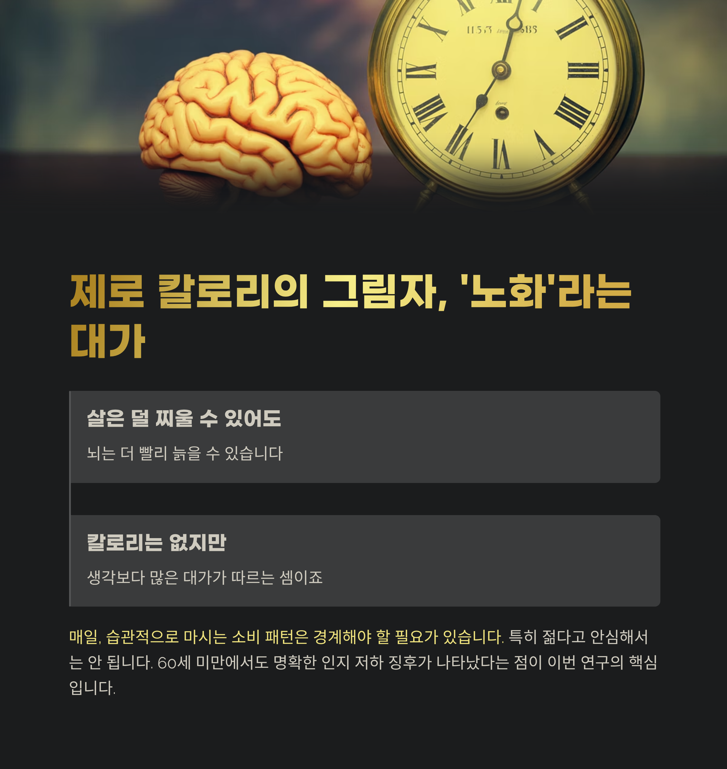 제로 칼로리의 그림자, '노화'라는 대가