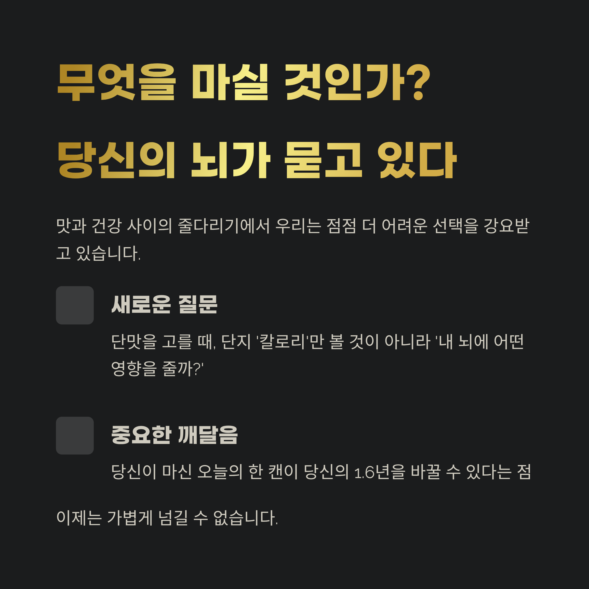 무엇을 마실 것인가? 당신의 뇌가 묻고 있다