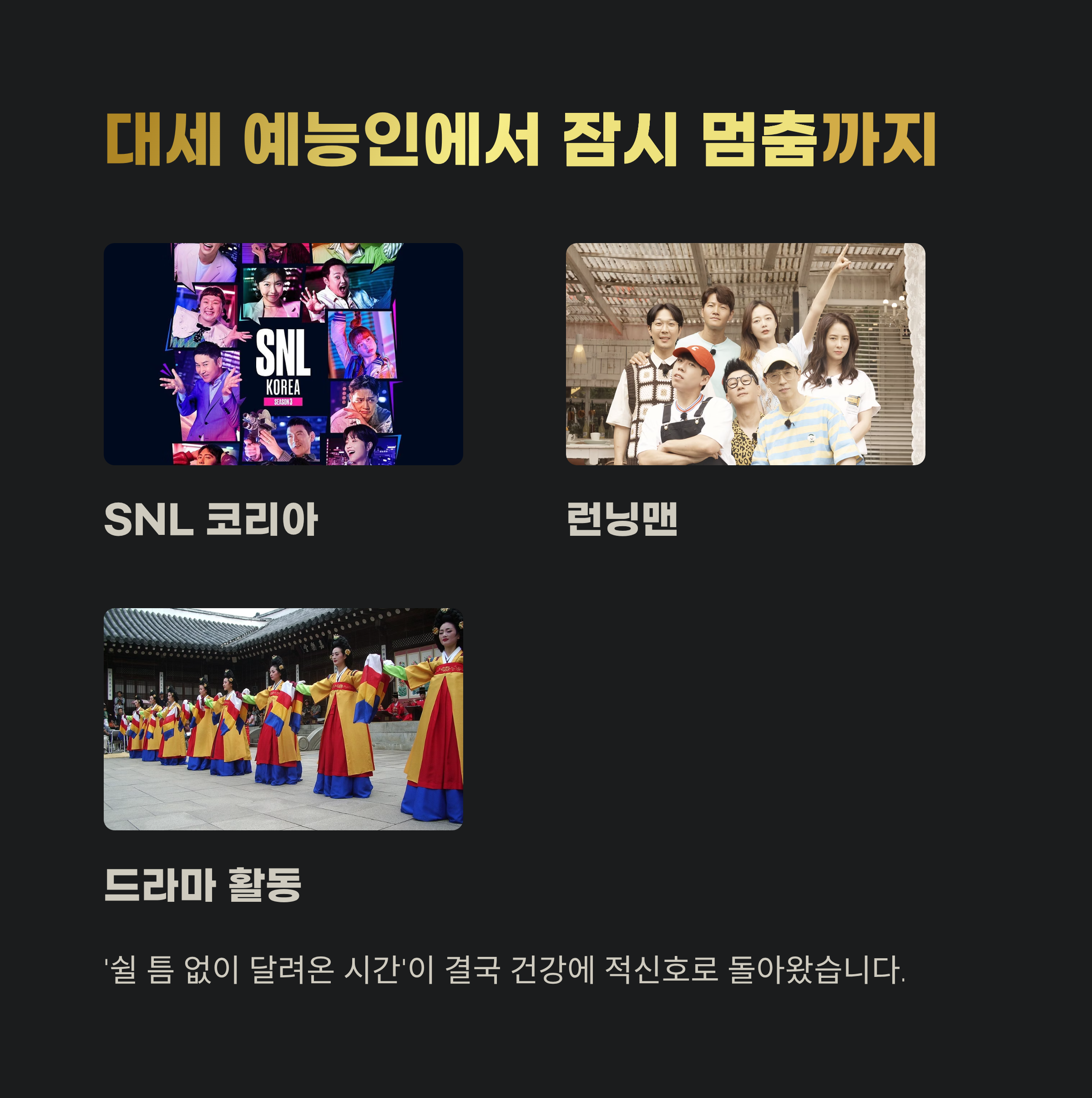 하지만 **‘쉴 틈 없이 달려온 시간’**이 결국 건강에 적신호로 돌아온 것.
