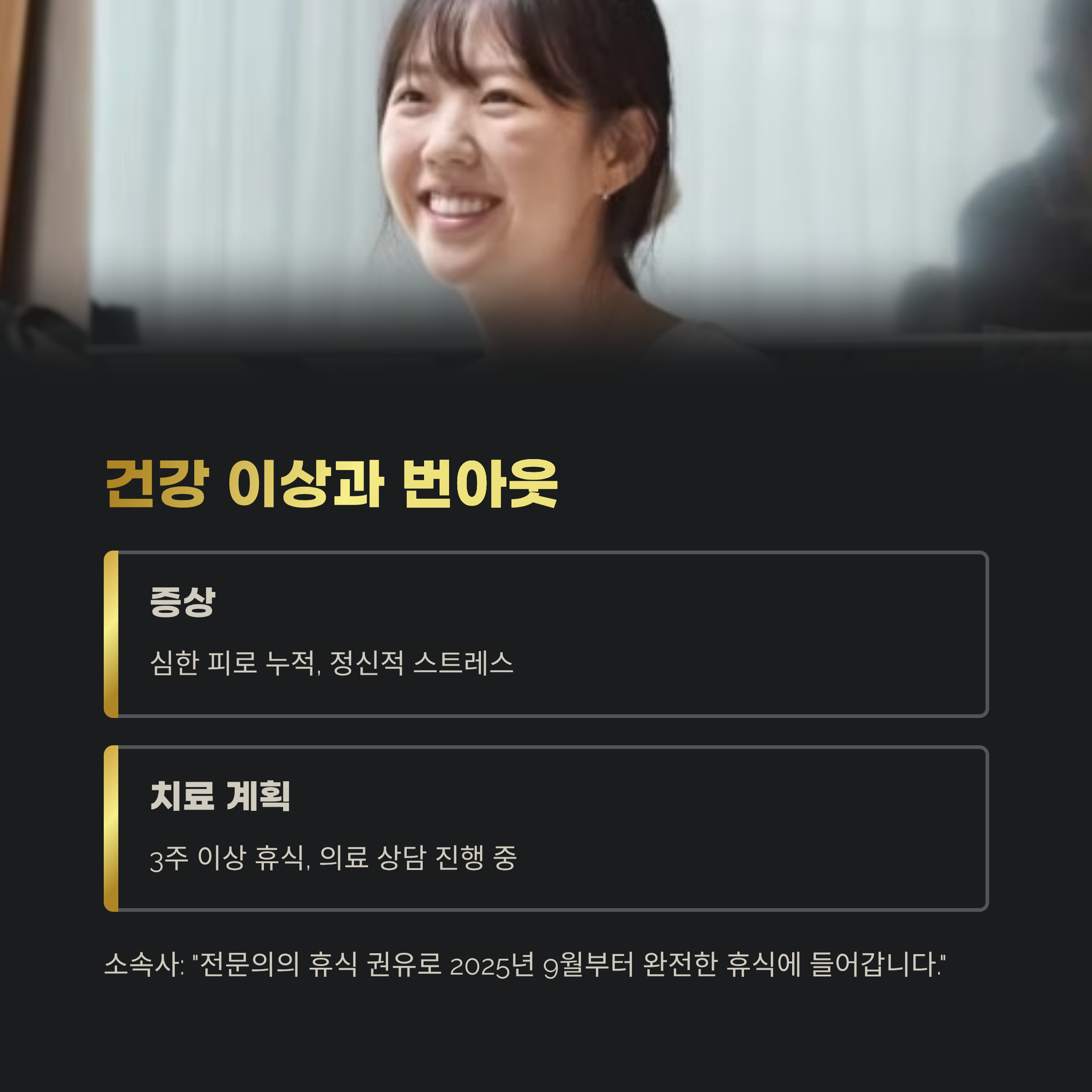 복귀 일정 미정 (본인 SNS 통해 ‘회복 후 인사 예정’)