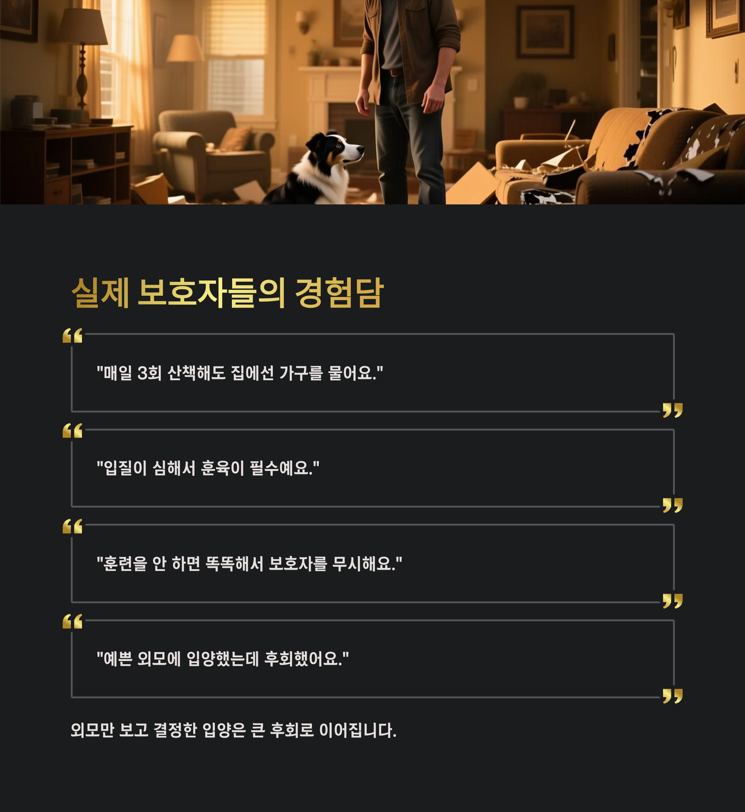 | “예쁜 외모에 입양했는데 후회했어요.” | 외모만 보고 결정한 입양의 함정 |