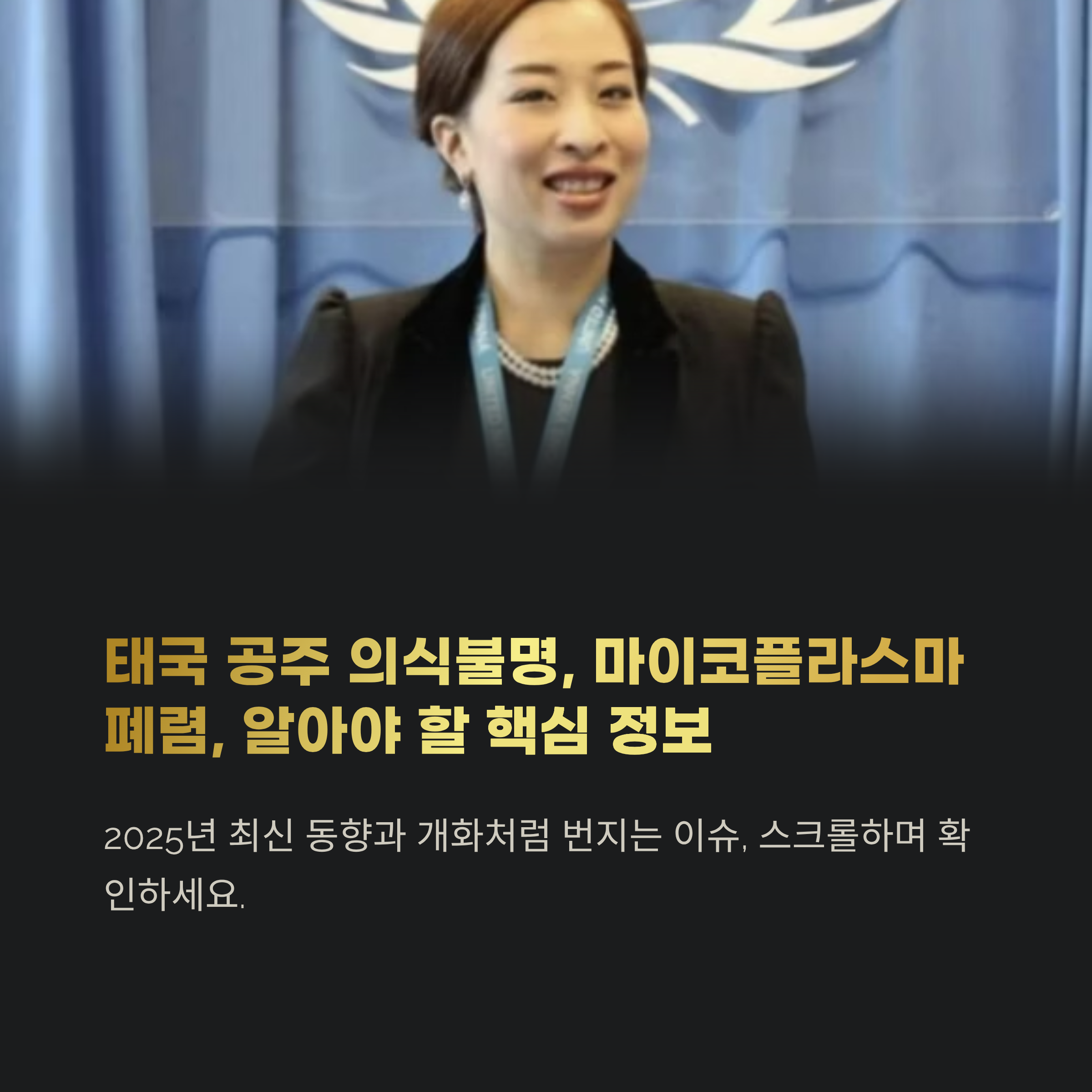 태국 왕실 장녀 팟차라까띠야파 나렌티라텝파야와디 공주는 2022년 12월 의식을 잃은 뒤 장기 치료를 이어오고 있으며, 2025년 8월 15일 태국 왕실사무국 발표에 따르면 심각한 혈류 감염으로 집중 치료 중이라고 전해졌습니다. 한편 2023년 중국에서 영유아 중심으로 확산했던 마이코플라스마 폐렴 이슈는 주기적 유행과 항생제 내성 이슈가 겹치며 국내 관심을 키웠습니다. 본 글은 해당 보도의 맥락, 질환의 특징, 치료제 정보, 투자 섹터 요약까지 사실에 기반해 정리합니다.