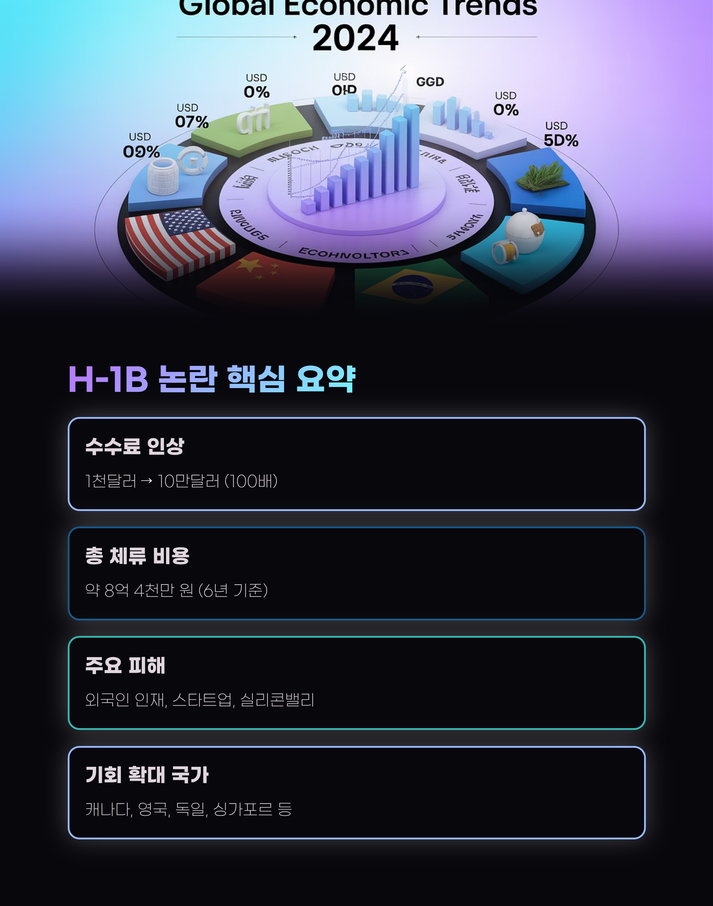 하지만 최근 도널드 트럼프 전 미국 대통령의 ‘H-1B 비자 수수료 100배 인상’ 발표는 이 모든 흐름에 제동을 걸고 있어요.