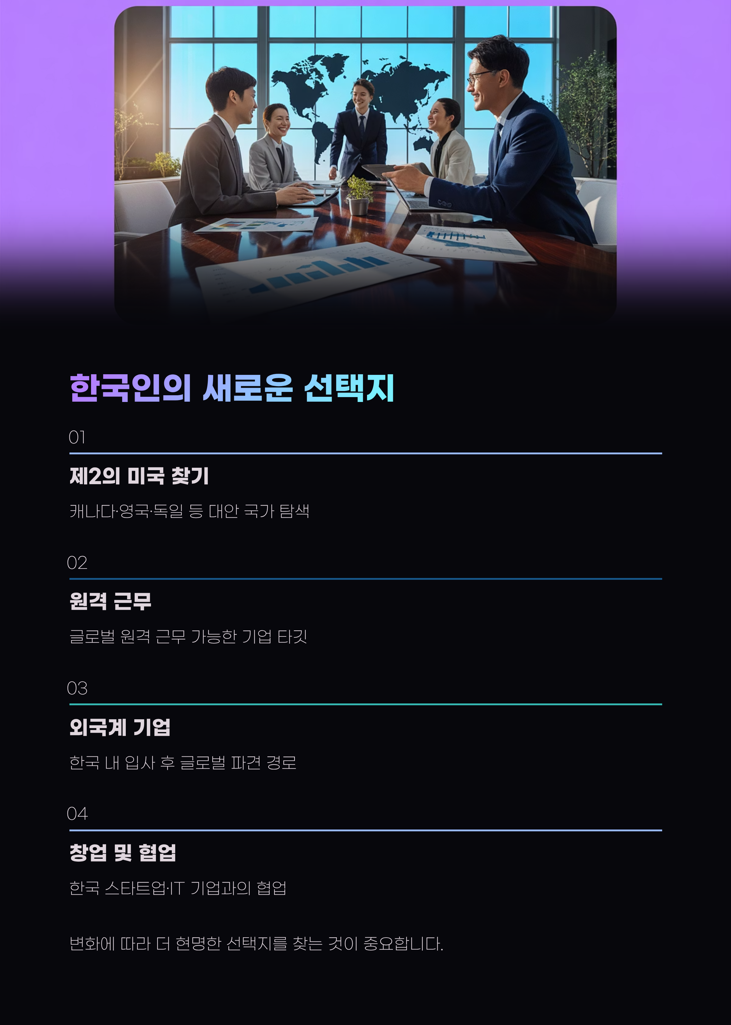개인 전략 대체국가 탐색, 원격 근무, 외국계 기업 취업 등