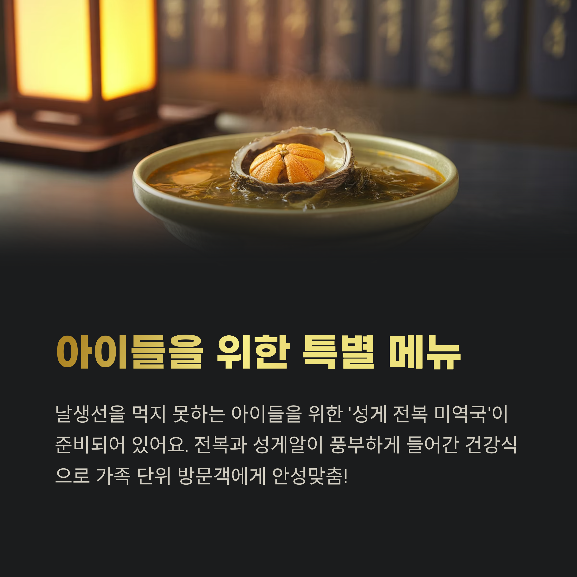대표적으로 ‘성게 전복 미역국’이 있는데요,