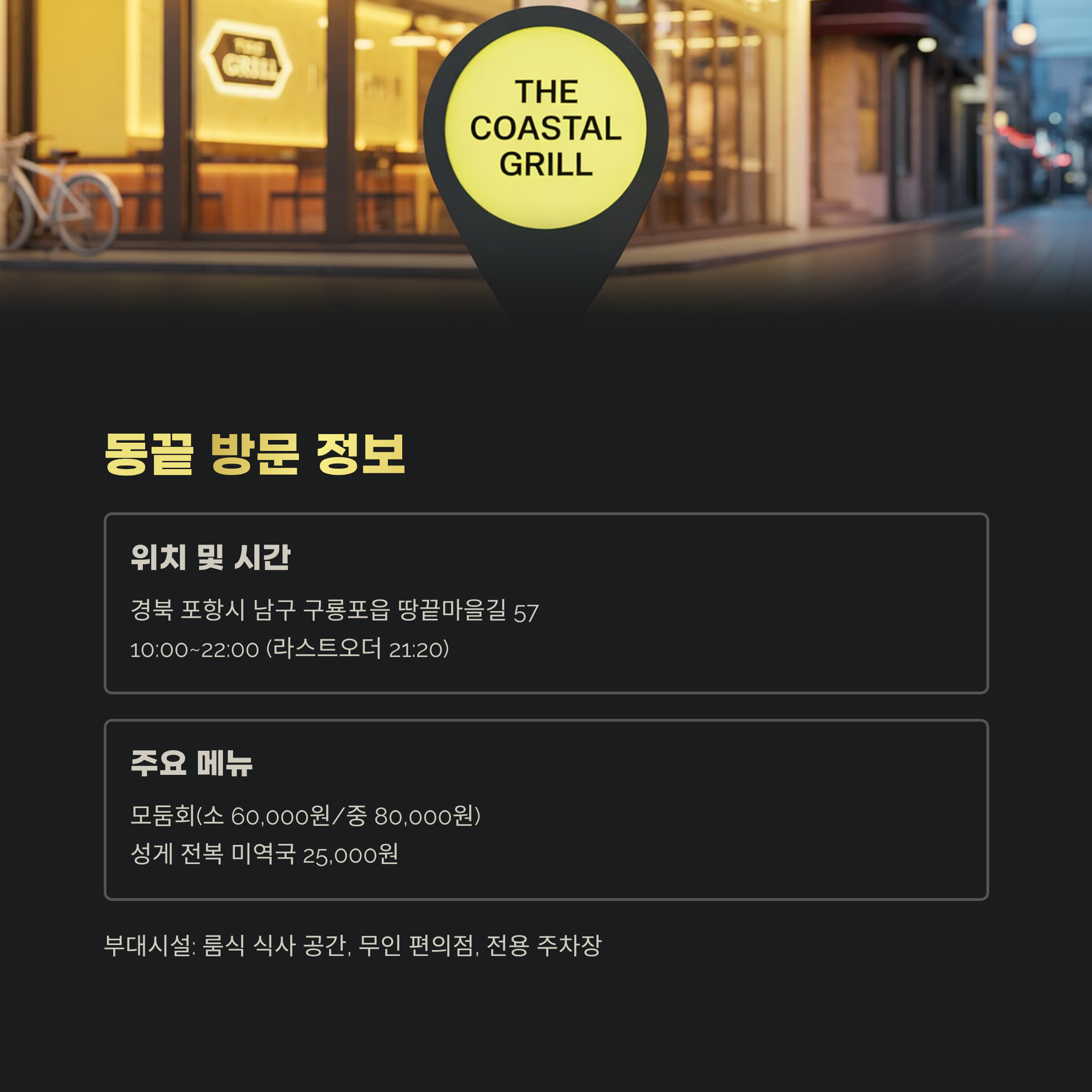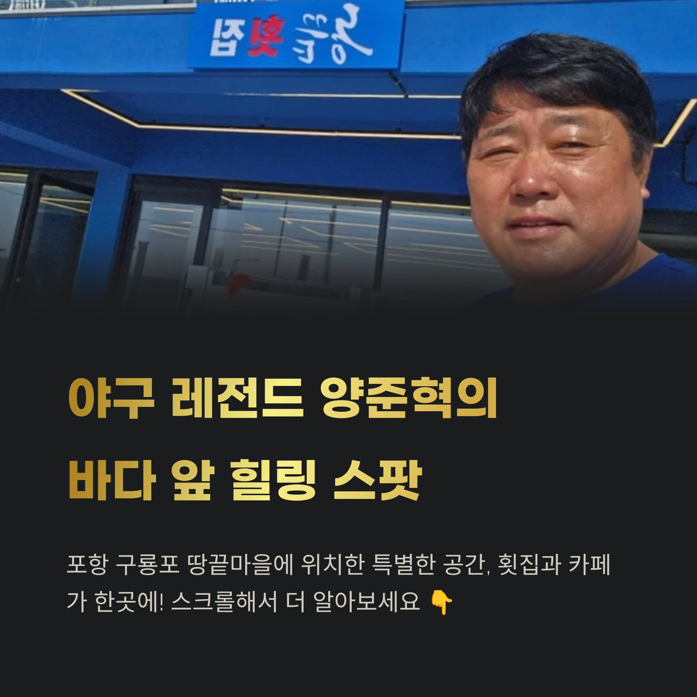 현재는 포항 구룡포에 위치한 이 횟집과 카페를 직접 운영하고 있습니다.