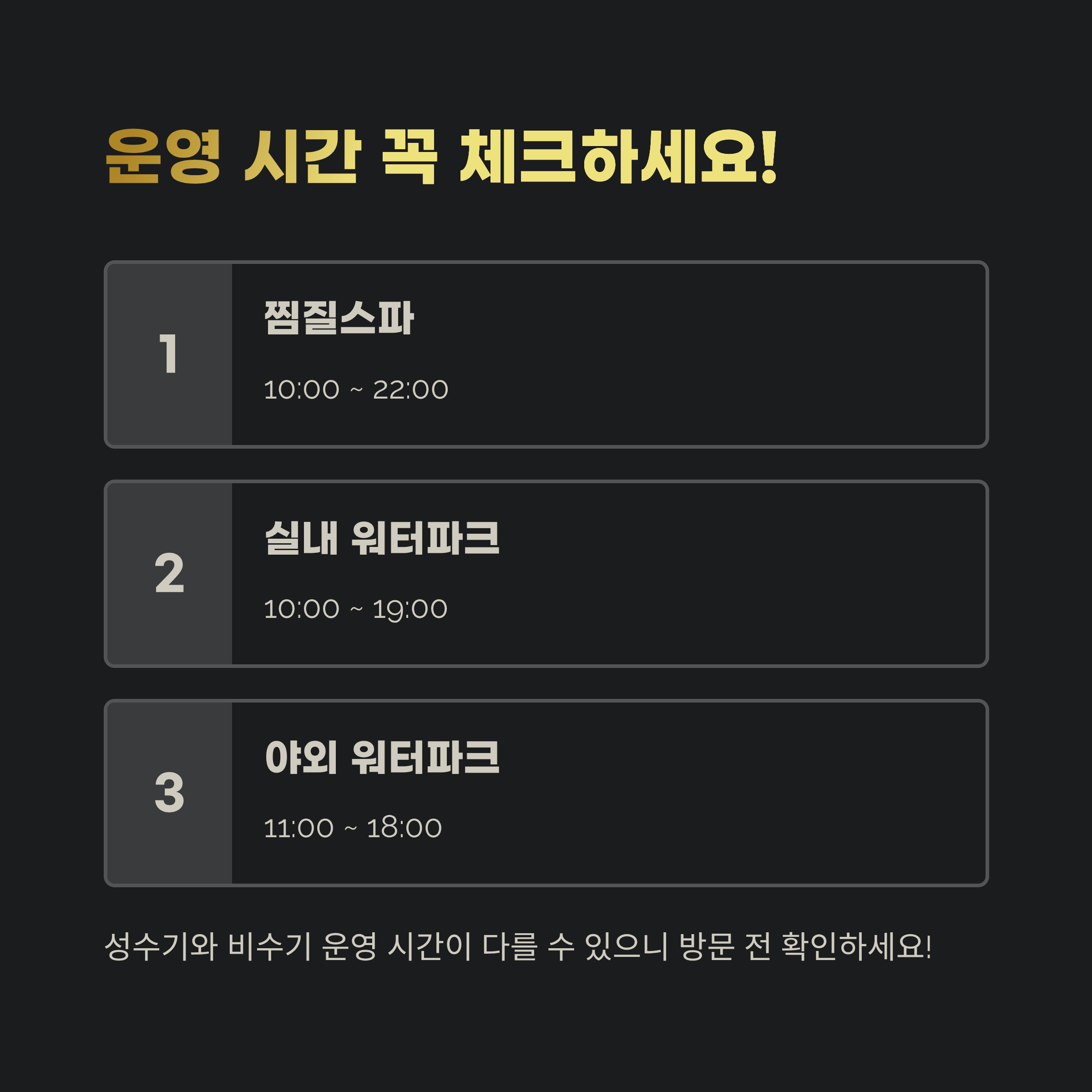 운영 시간과 시즌별 차이도 꼭 체크하세요