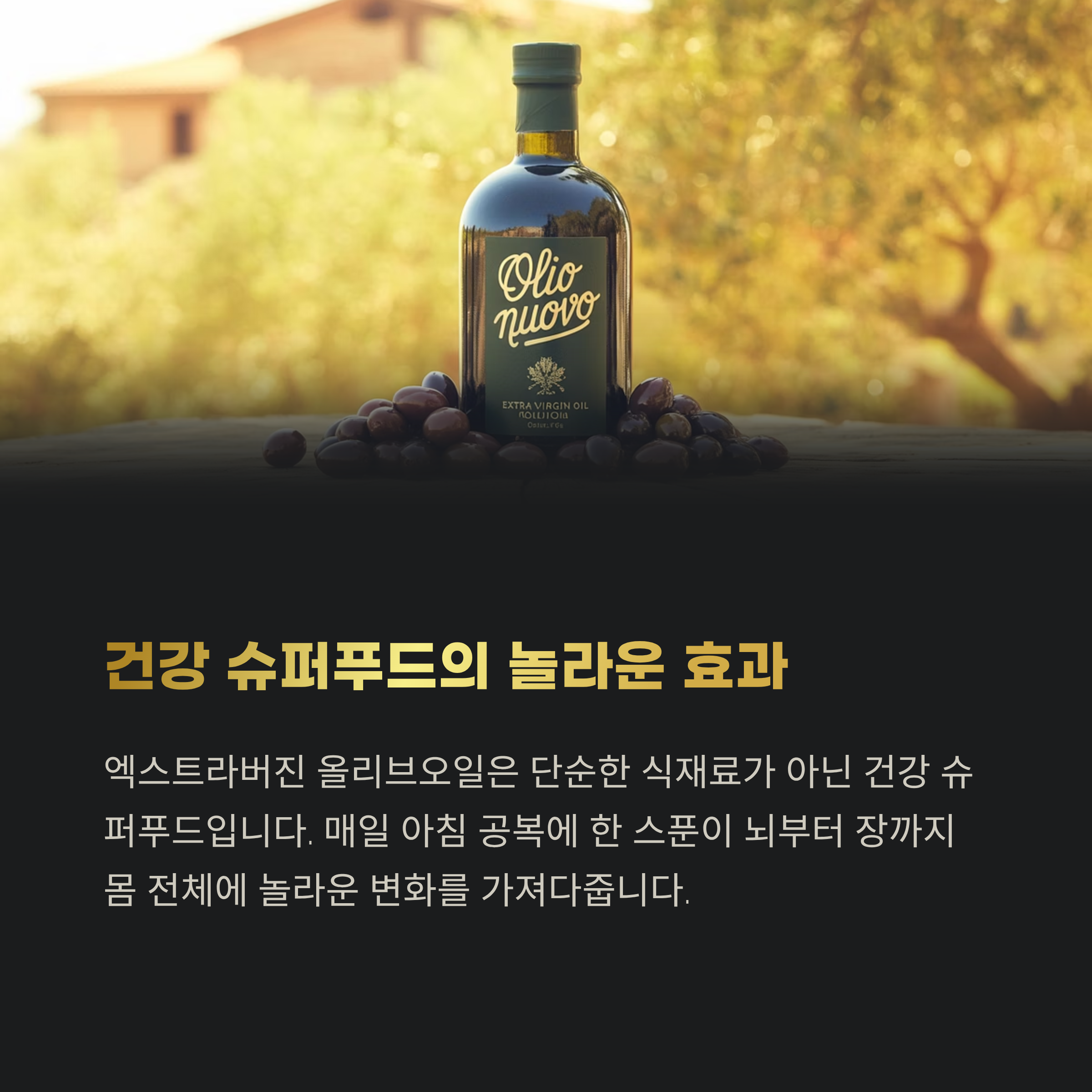 한 연구에 따르면, 매일 엑스트라버진 올리브오일을 섭취한 그룹이 그렇지 않은 그룹보다 심장 건강 지표가 유의미하게 개선됐다고 합니다.