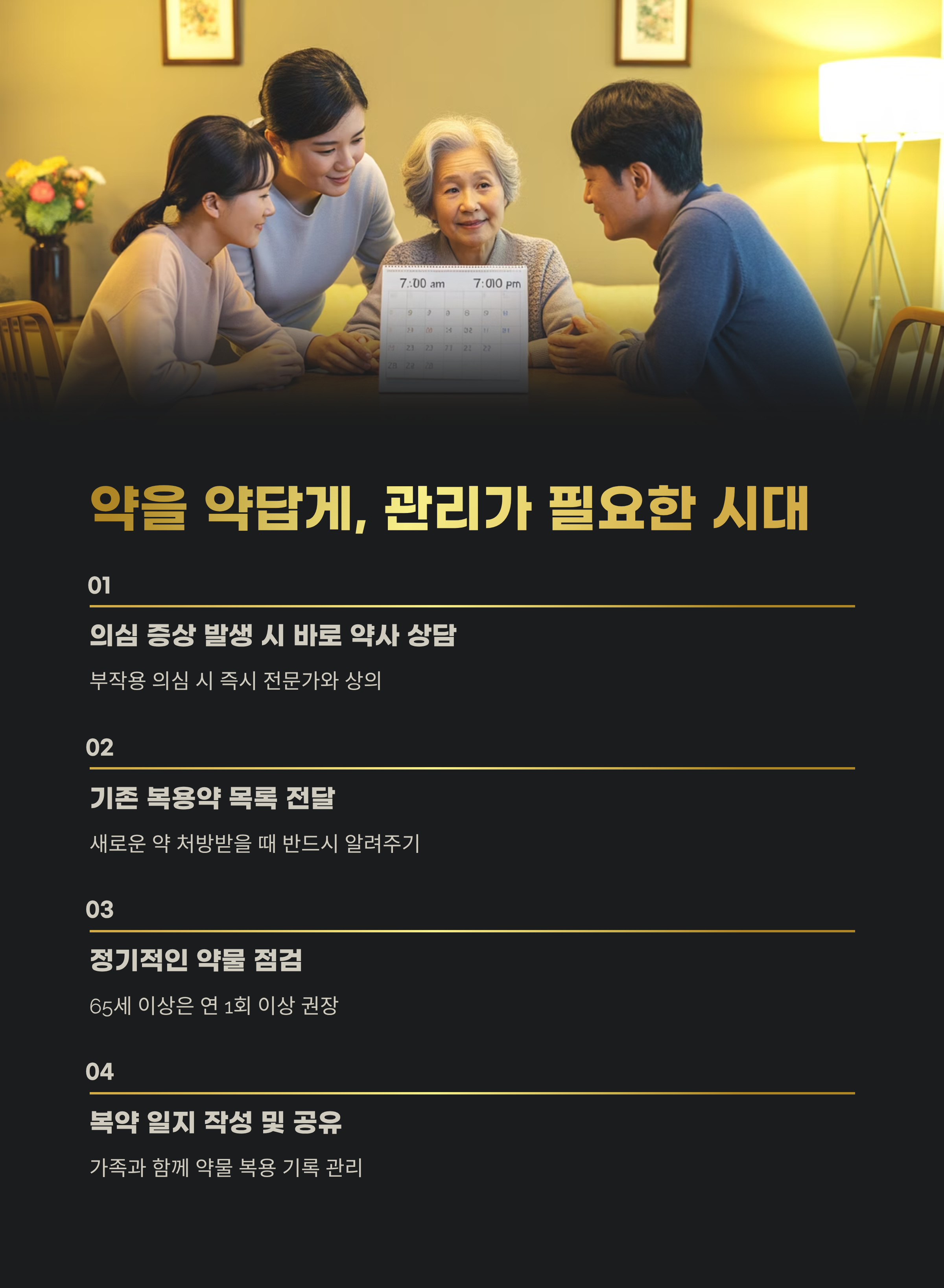 - 정기적인 약물 점검 (특히 65세 이상은 연 1회 이상 권장)