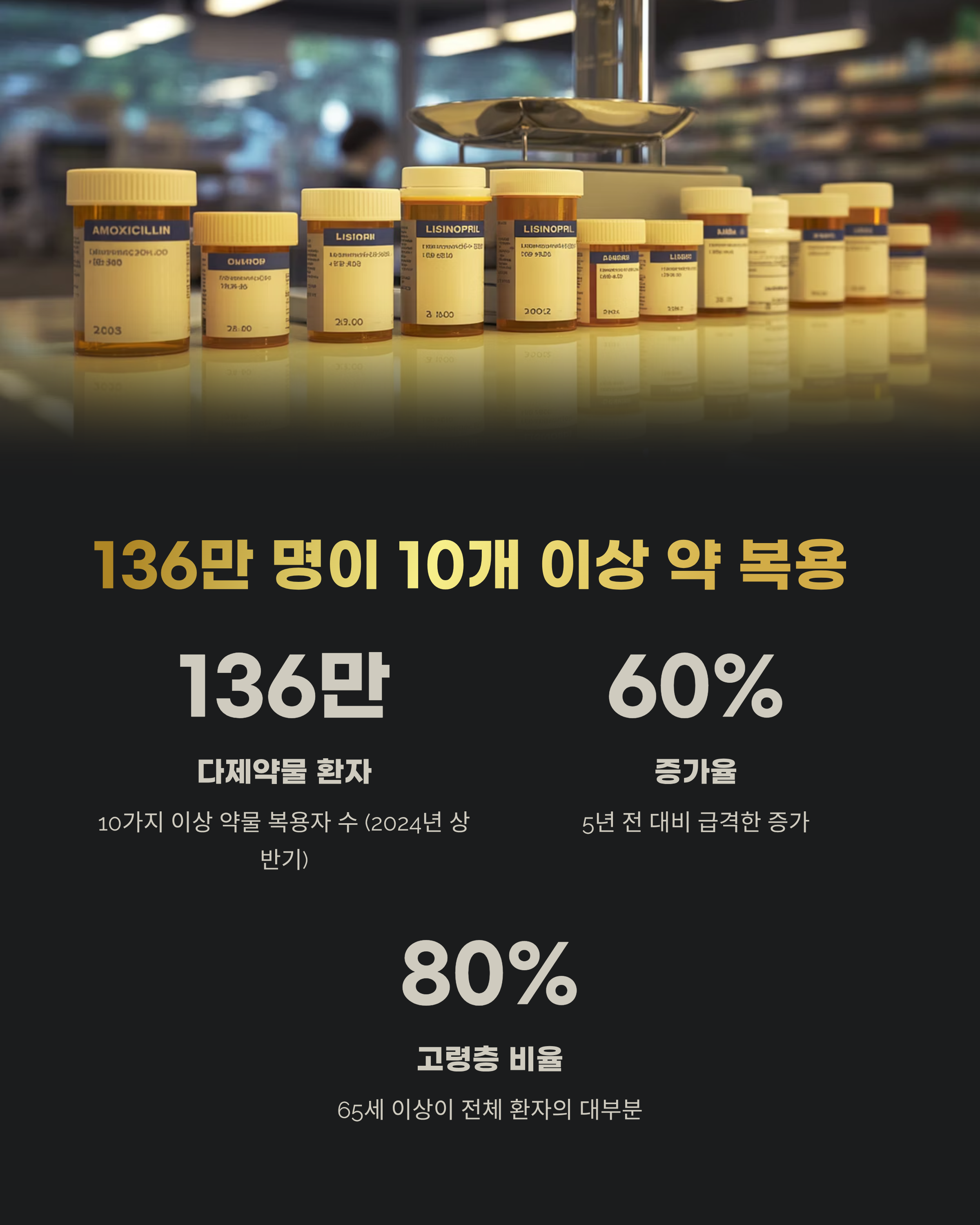 대한민국은 이미 초고령 사회에 진입했으며, 만성질환과 함께 늘어나는 약물 처방량도 심각한 사회문제로 떠오르고 있습니다. 특히 10가지 이상의 약을 매일 복용하는 '다제약물 환자'가 136만 명을 넘어서며, 약이 병을 낫게 하기보다 병을 더 키우는 상황이 벌어지고 있습니다. 이번 글에서는 다제약물 복용이 가져올 수 있는 부작용, 주요 통계, 고령층 건강 관리에 필요한 대책까지 자세히 다뤄보겠습니다.