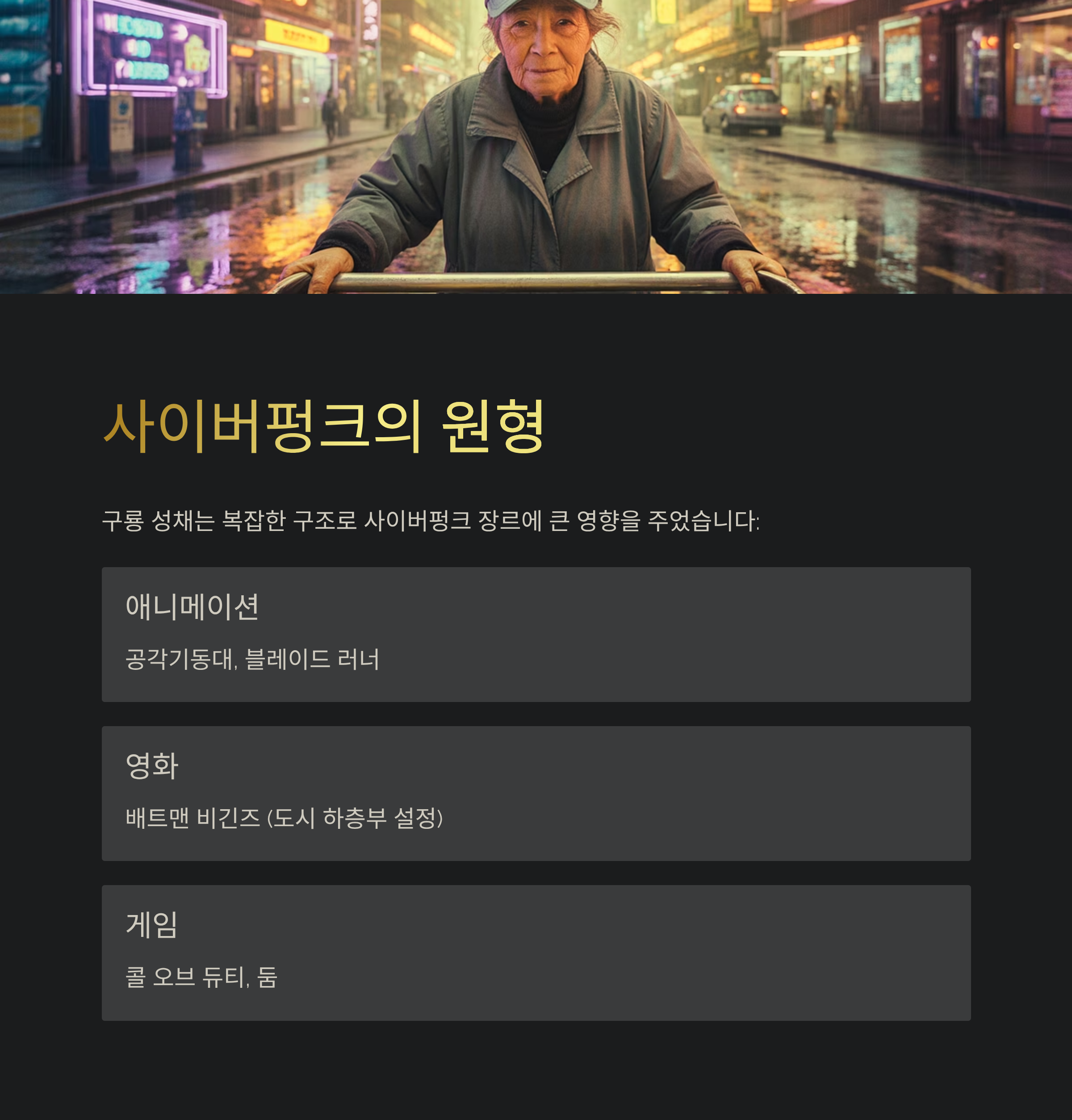 구룡 성채는 그 난잡하고 복잡한 구조 덕분에 사이버펑크 장르의 원형처럼 여겨졌어요.