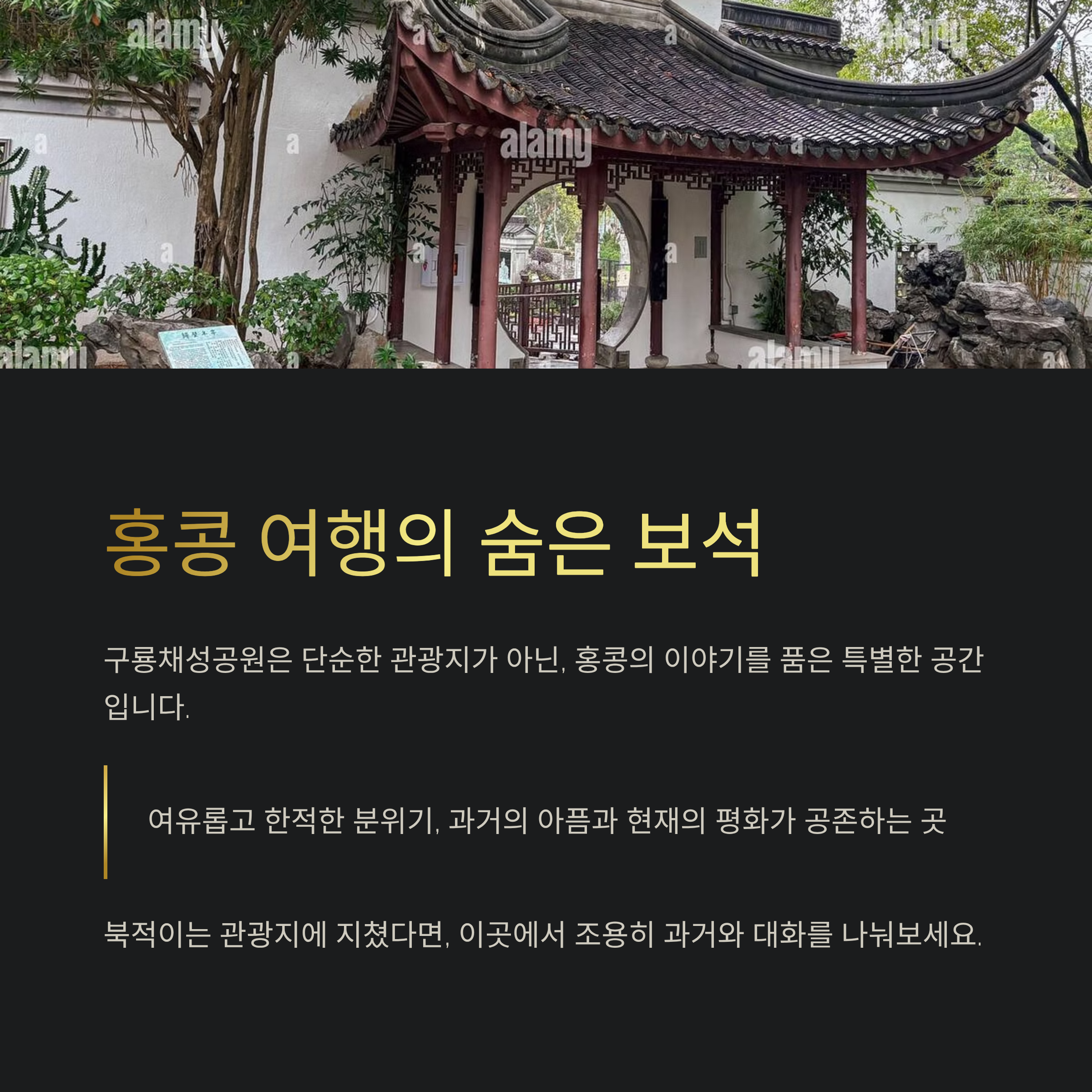 홍콩의 역사와 도시의 이면을 들여다볼 수 있는 특별한 장소, 바로 구룡 성채 공원입니다. 한때 ‘세상에서 가장 혼잡한 슬럼’으로 악명 높았던 구룡 성채가 지금은 아름답고 조용한 공원으로 재탄생했습니다. 이 글에서는 구룡 성채 공원의 위치, 가는 방법, 입장료, 내부 시설, 그리고 여행 팁까지 현지 감성 가득 담아 생생히 소개해 드릴게요. 홍콩 여행 중 색다른 경험을 원하신다면 주목해 주세요!