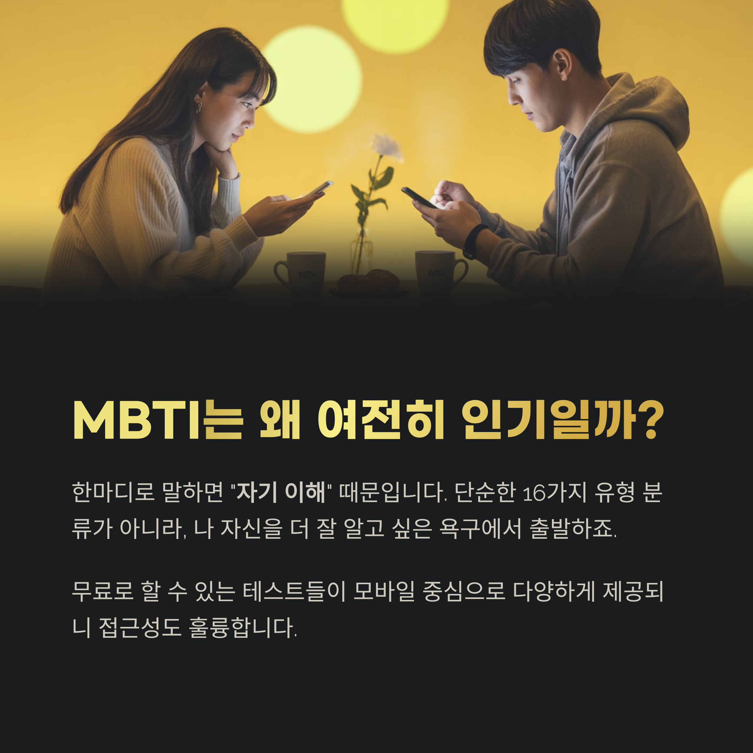 2025년 현재도 취업, 연애, 인간관계 등 실생활 전반에서 MBTI를 참고하는 사람들이 늘고 있어요.