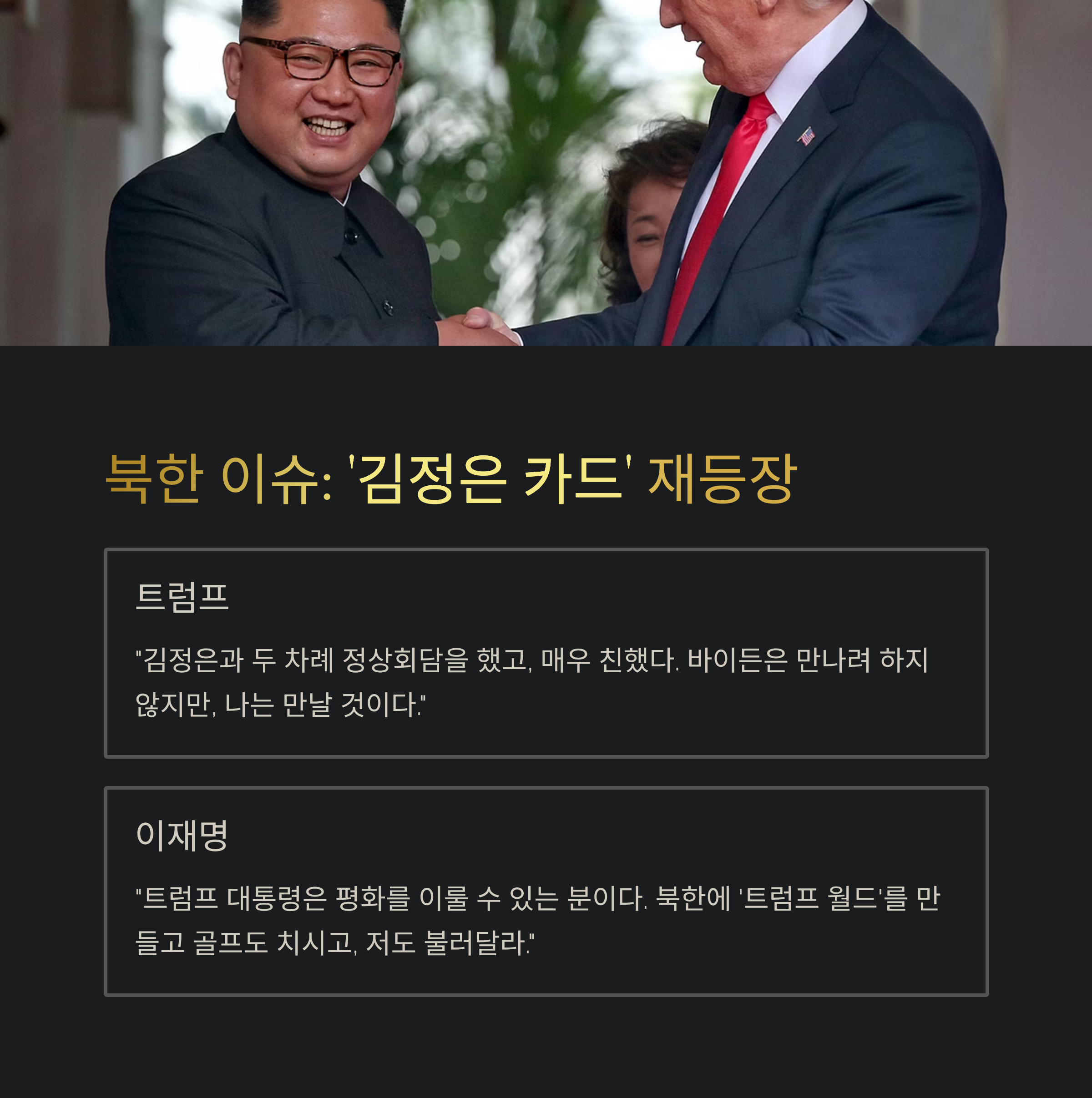 3. 북한 이슈: 트럼프-이재명, 다시 '김정은 카드' 꺼내