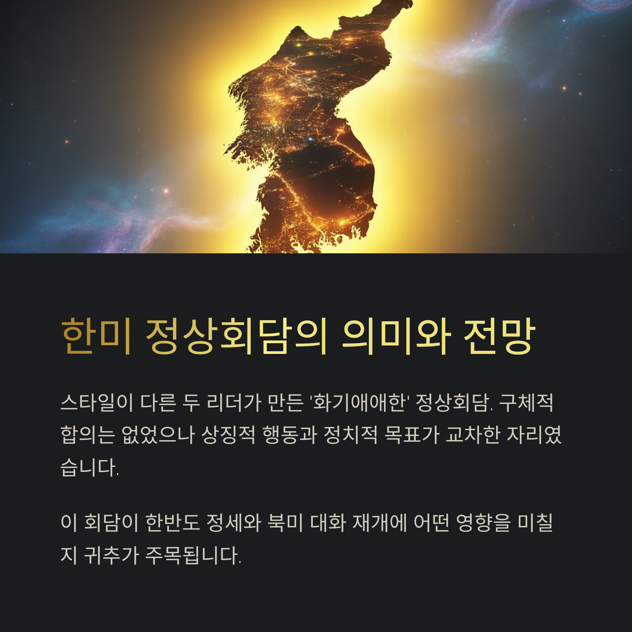앞으로 이 회담이 한반도 정세에 어떤 영향을 미칠지, 또 북미 간 대화 재개에 어떤 실마리를 제공할지 귀추가 주목됩니다.