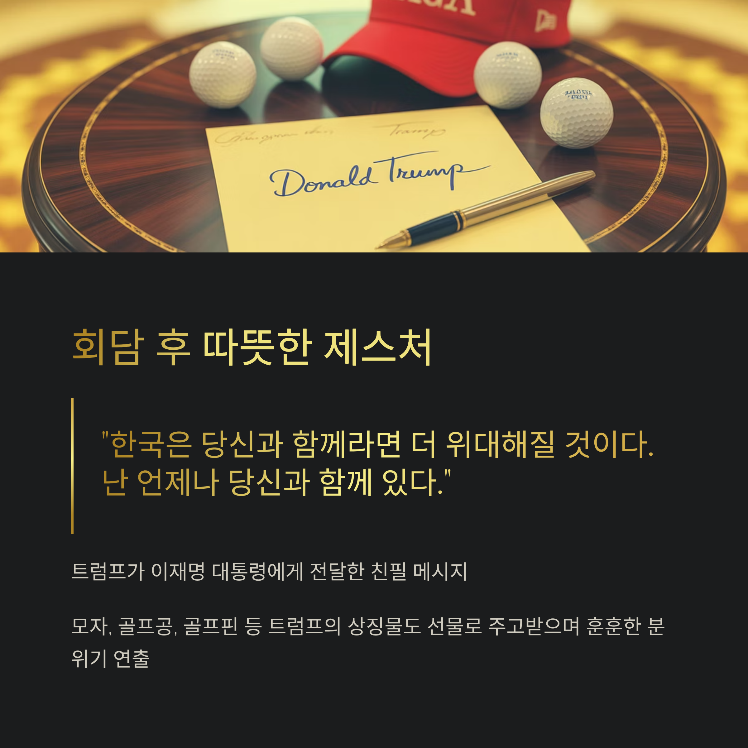 회담 종료 후 트럼프는 이재명 대통령에게 친필 메시지를 전달했습니다.