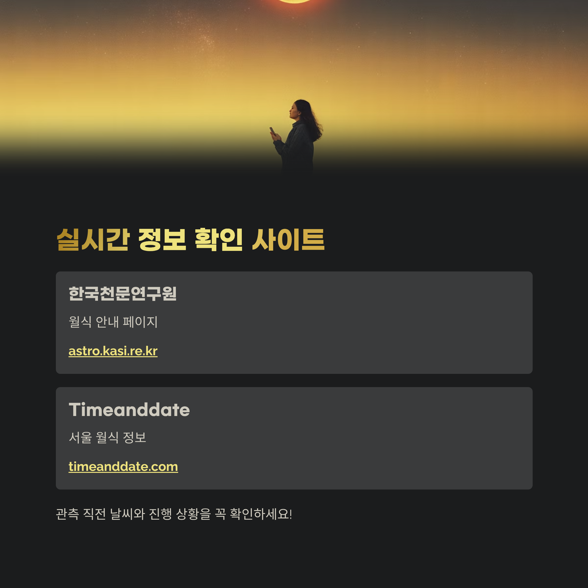 관측 직전, 날씨나 진행 상황은 아래에서 실시간으로 확인하세요.