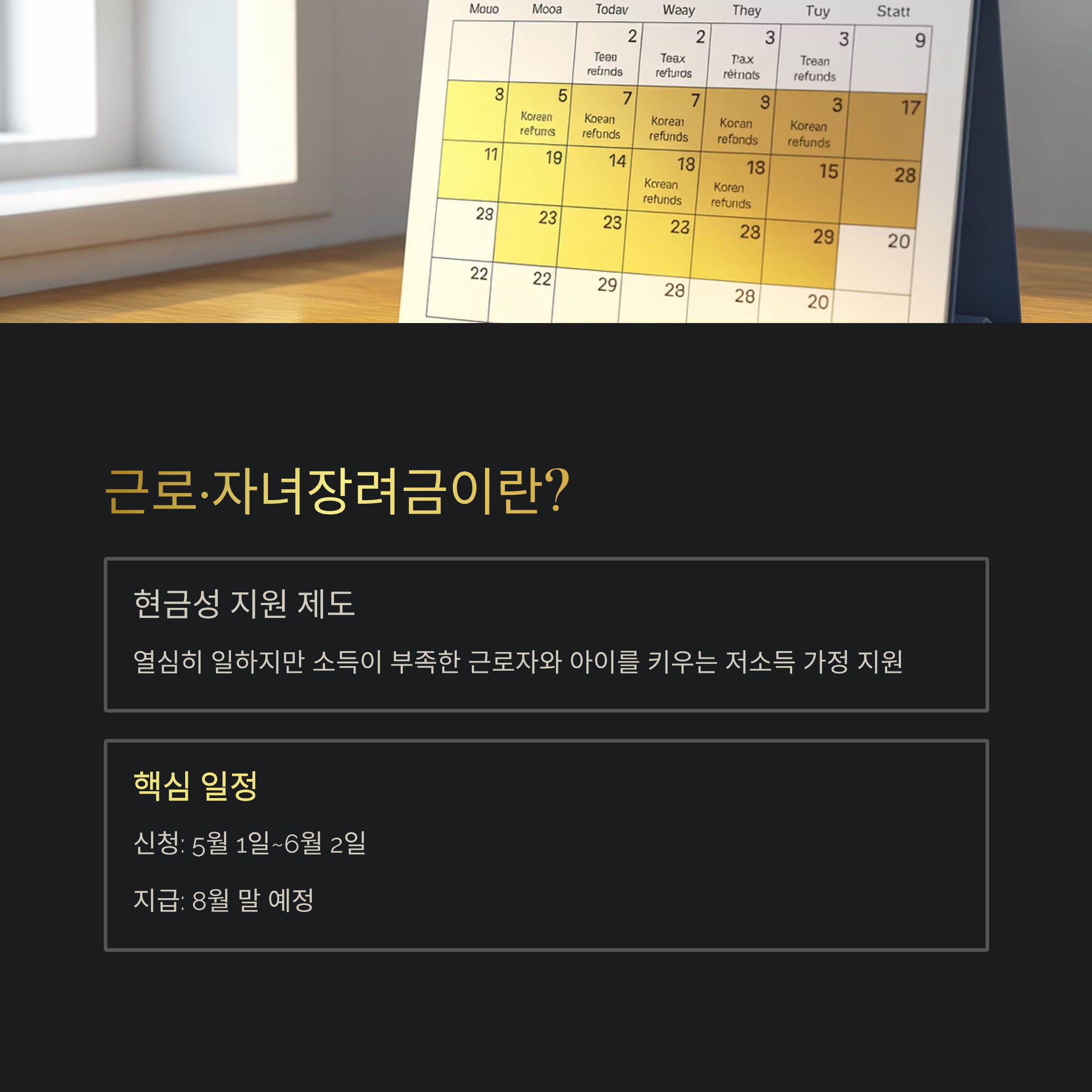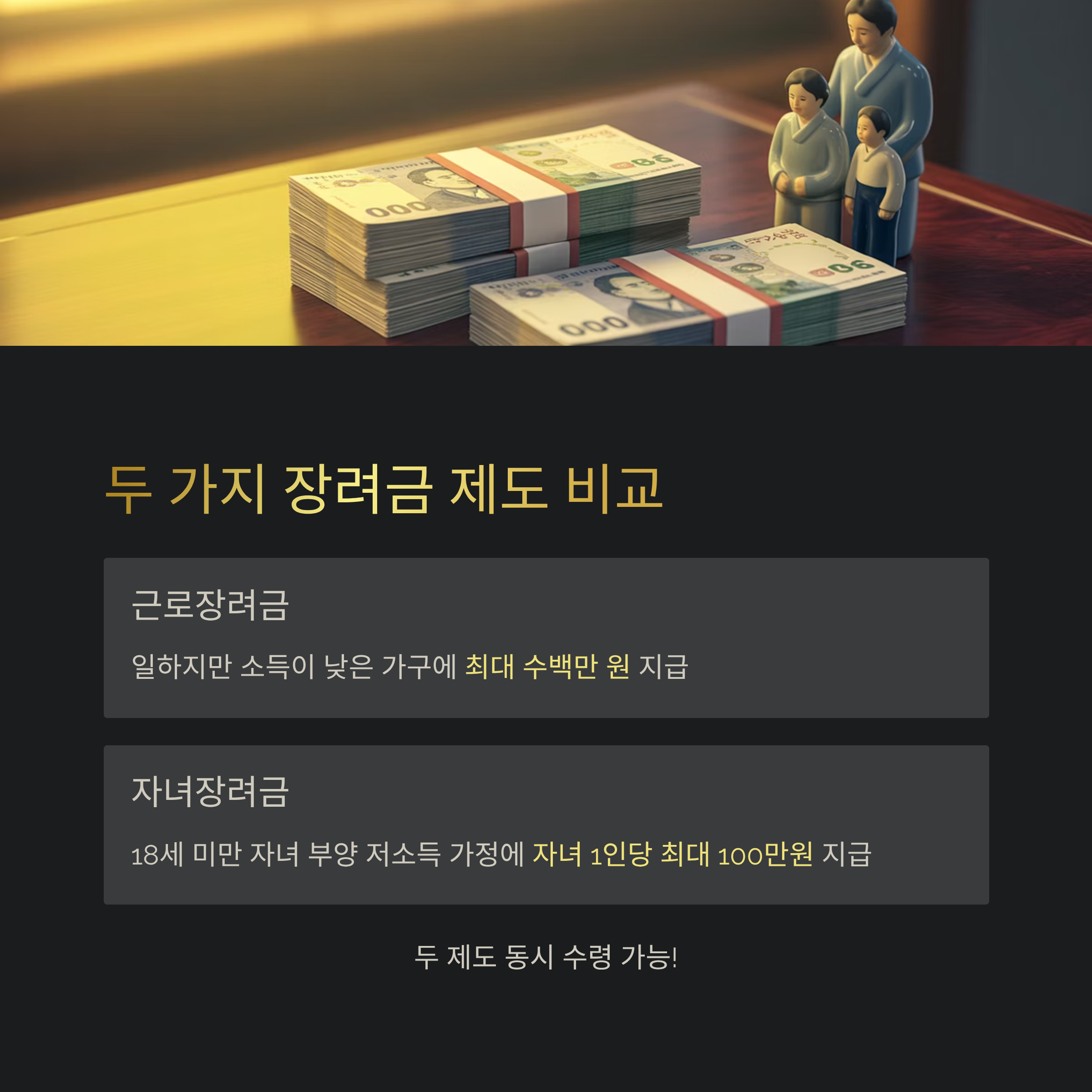 열심히 일하지만 소득이 부족한 근로자와 아이를 키우는 저소득 가정을 위한 현금성 지원 제도인데요.
