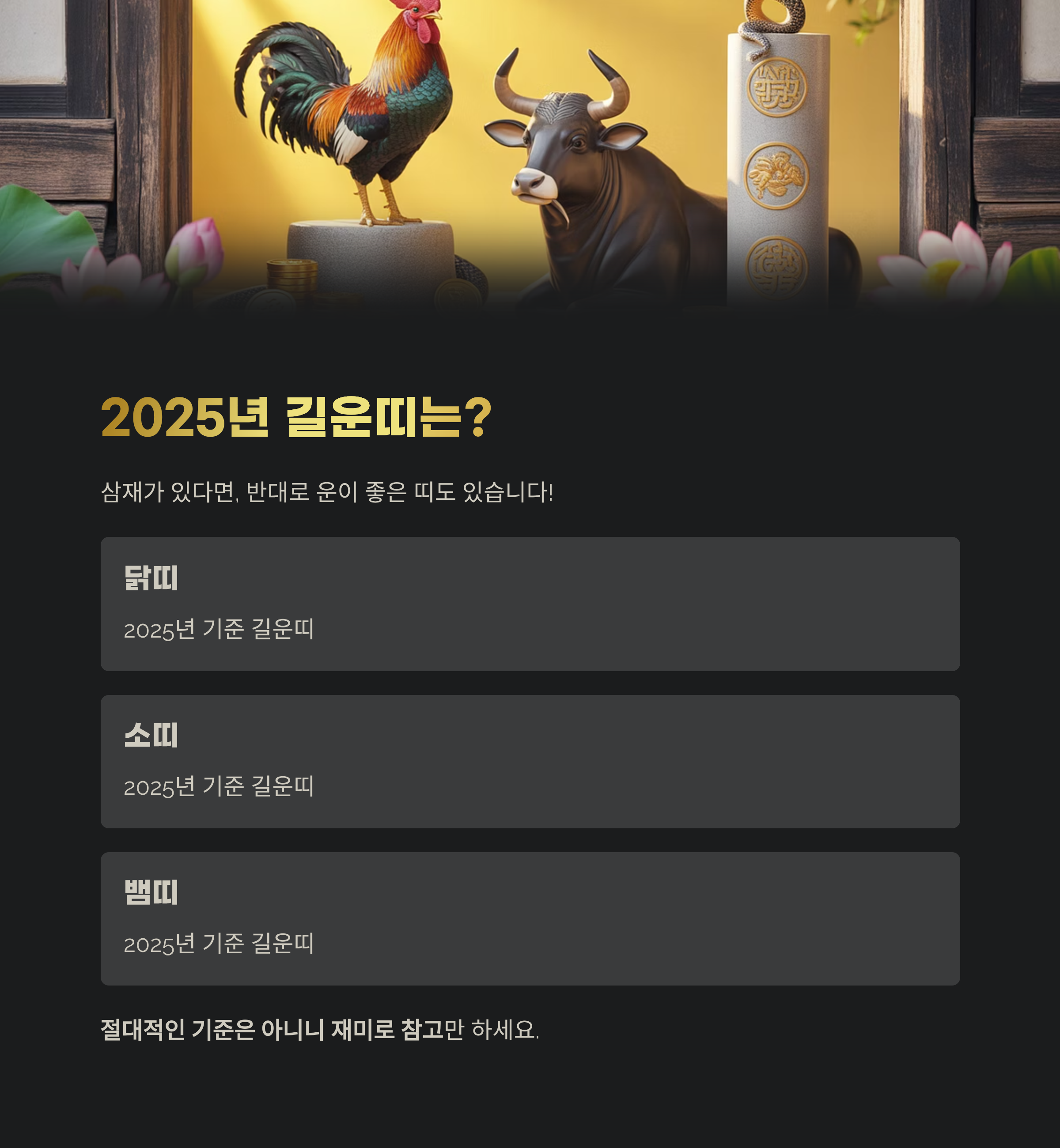 2025년 기준으로 닭띠, 소띠, 뱀띠는