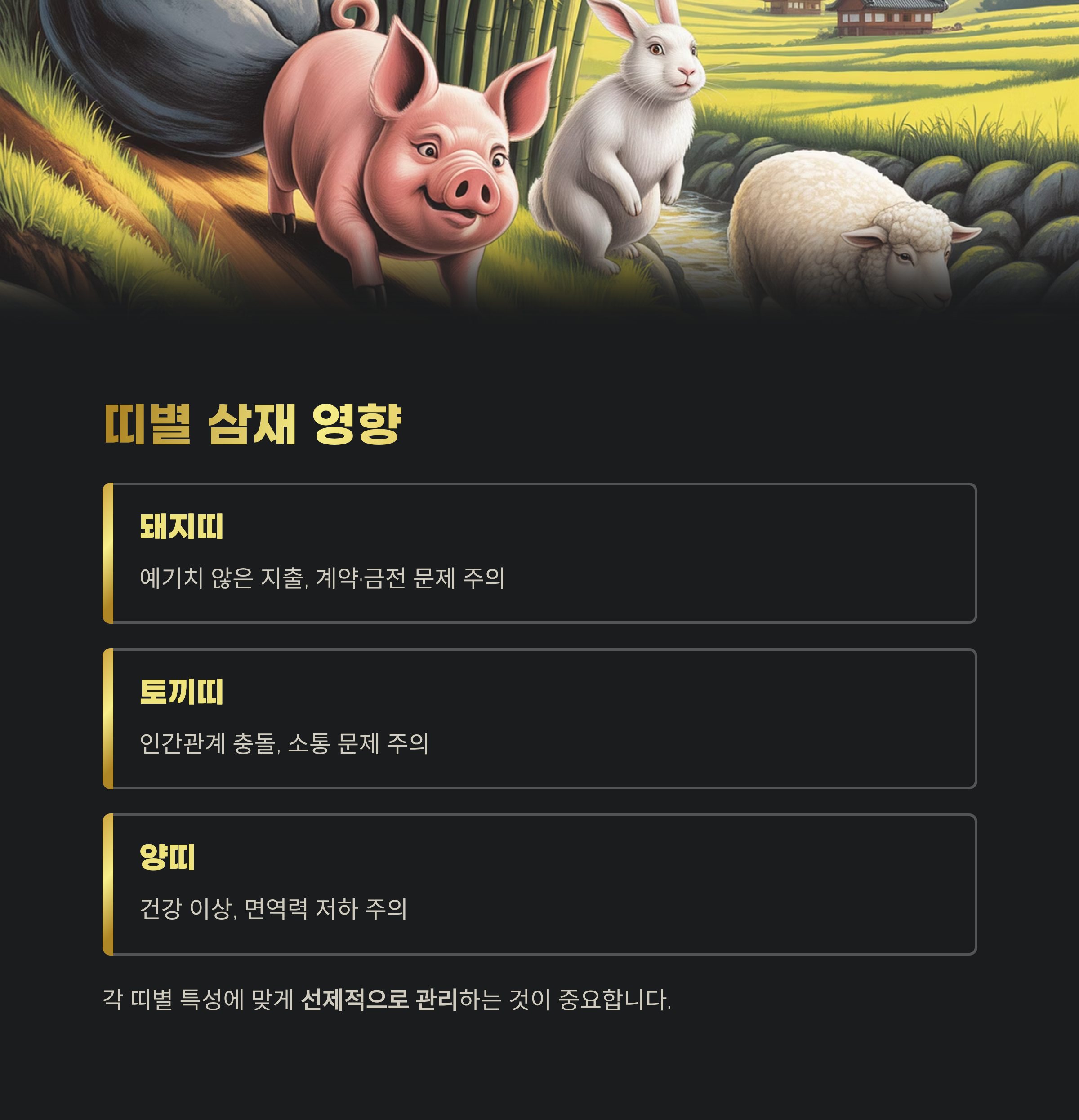 | 토끼띠 | 인간관계 충돌, 소통 문제 주의 |