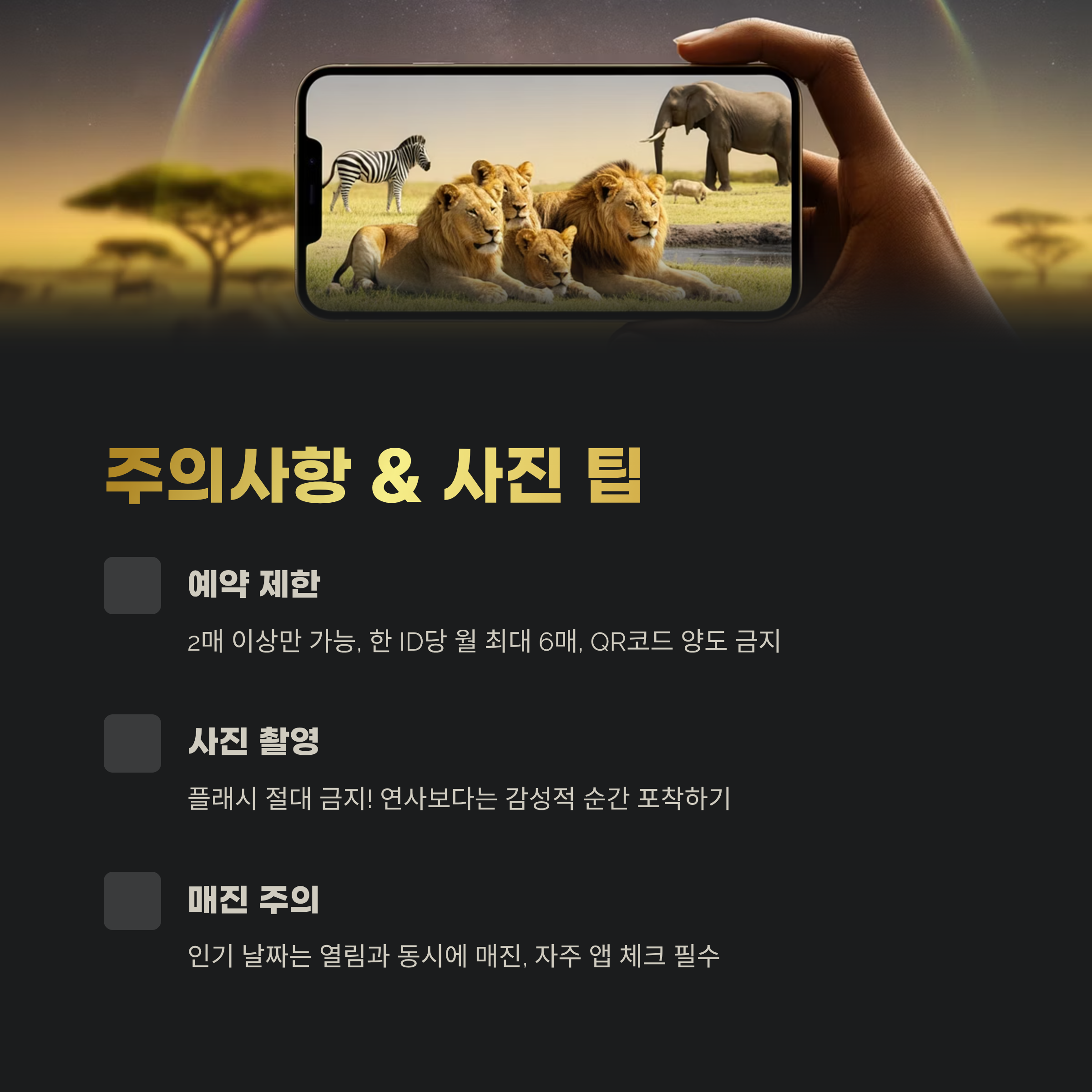 에버랜드 나이트사파리 트램은 스마트 예약 전용으로, 앱 또는 홈페이지를 통해서만 가능합니다. 현장 구매는 절대 안 되니 유의하세요.