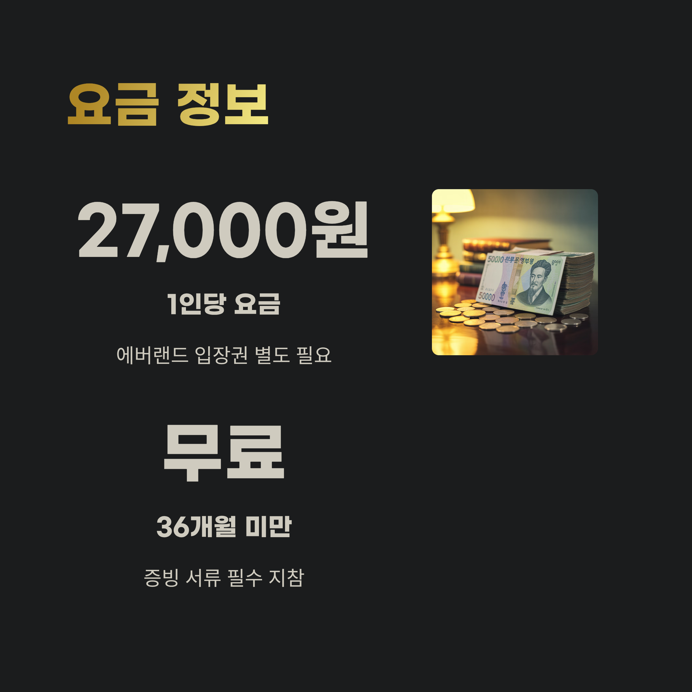 - 36개월 미만 유아는 무료 (증빙 서류 필수)