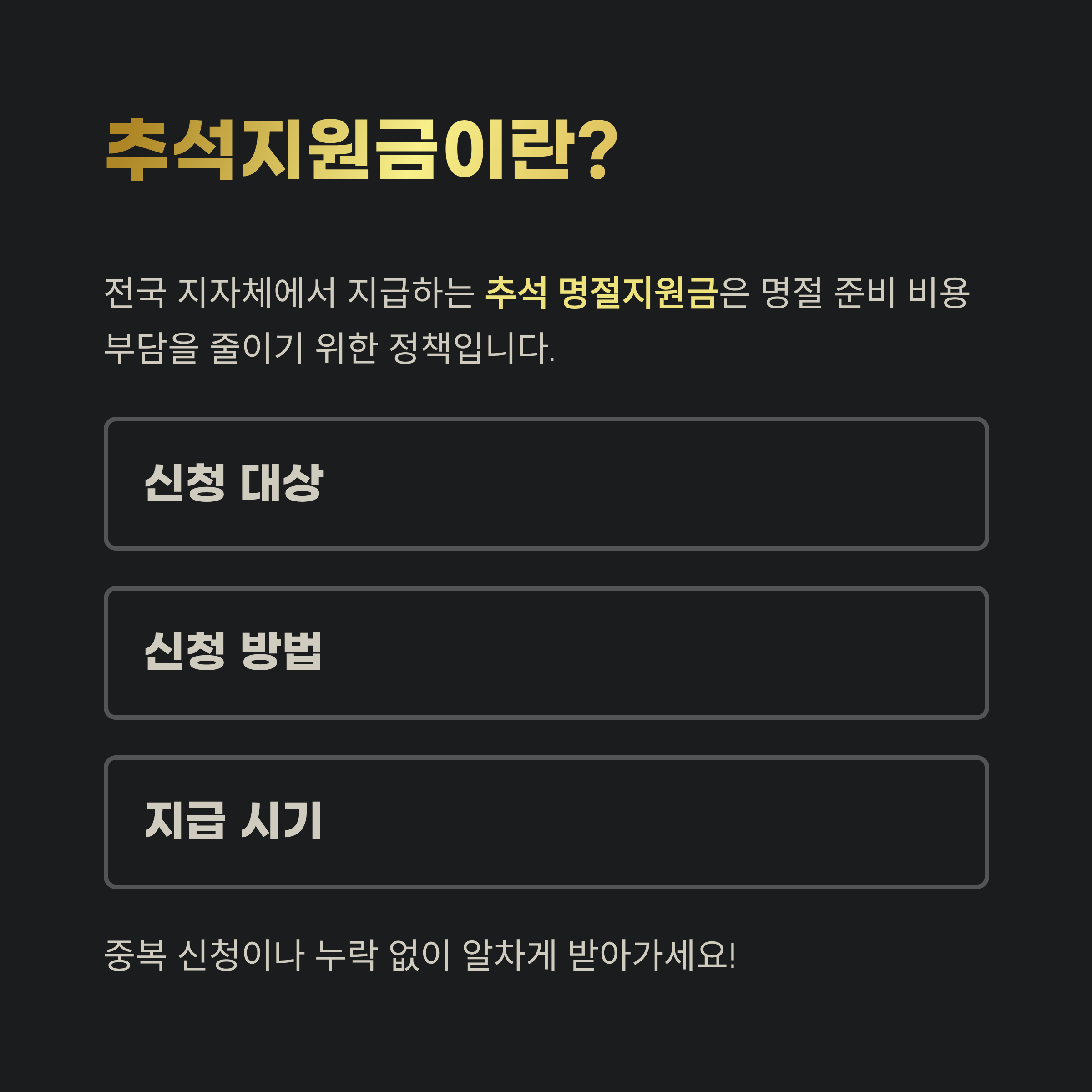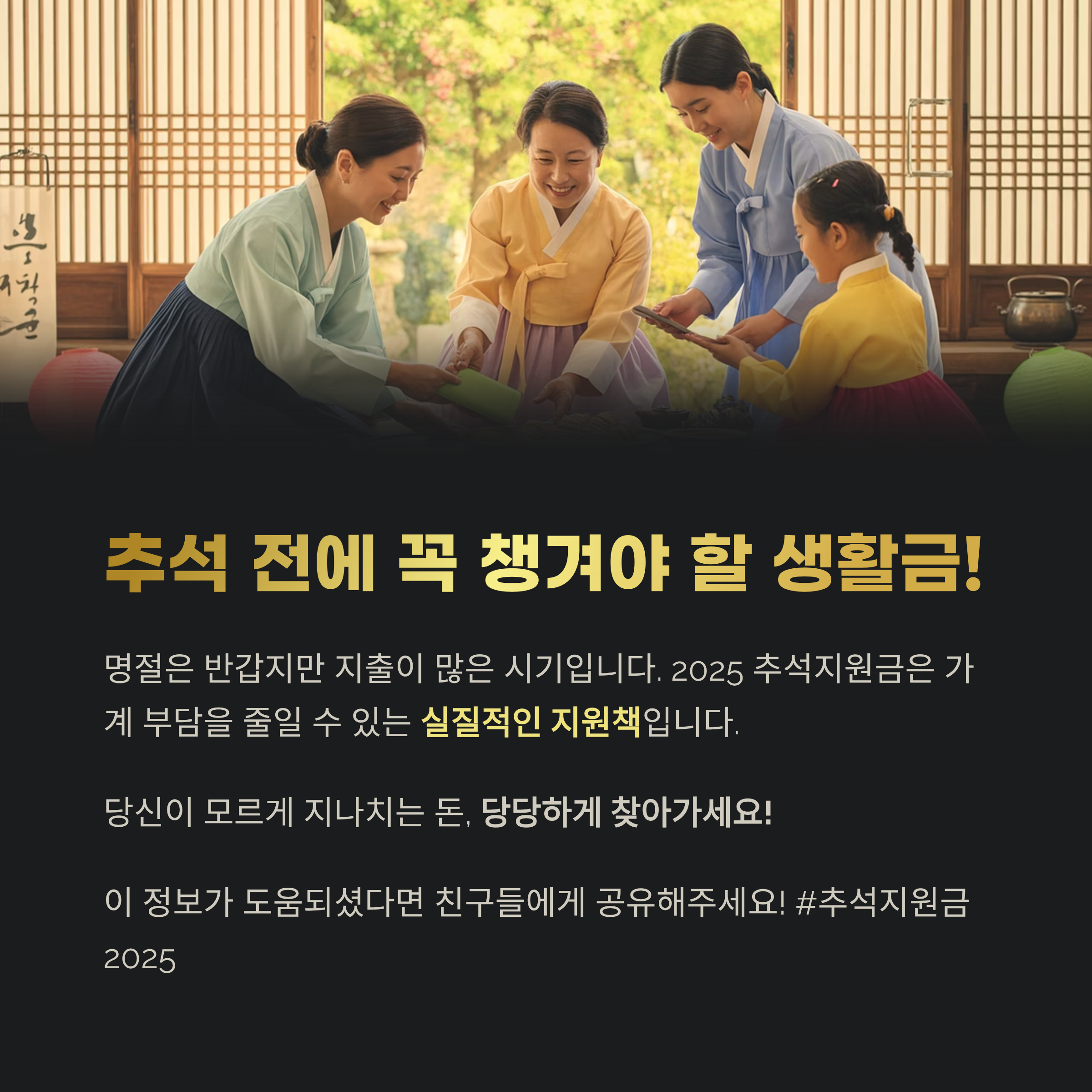 2025 추석지원금은 가계 부담을 줄일 수 있는 실질적인 지원책입니다.
