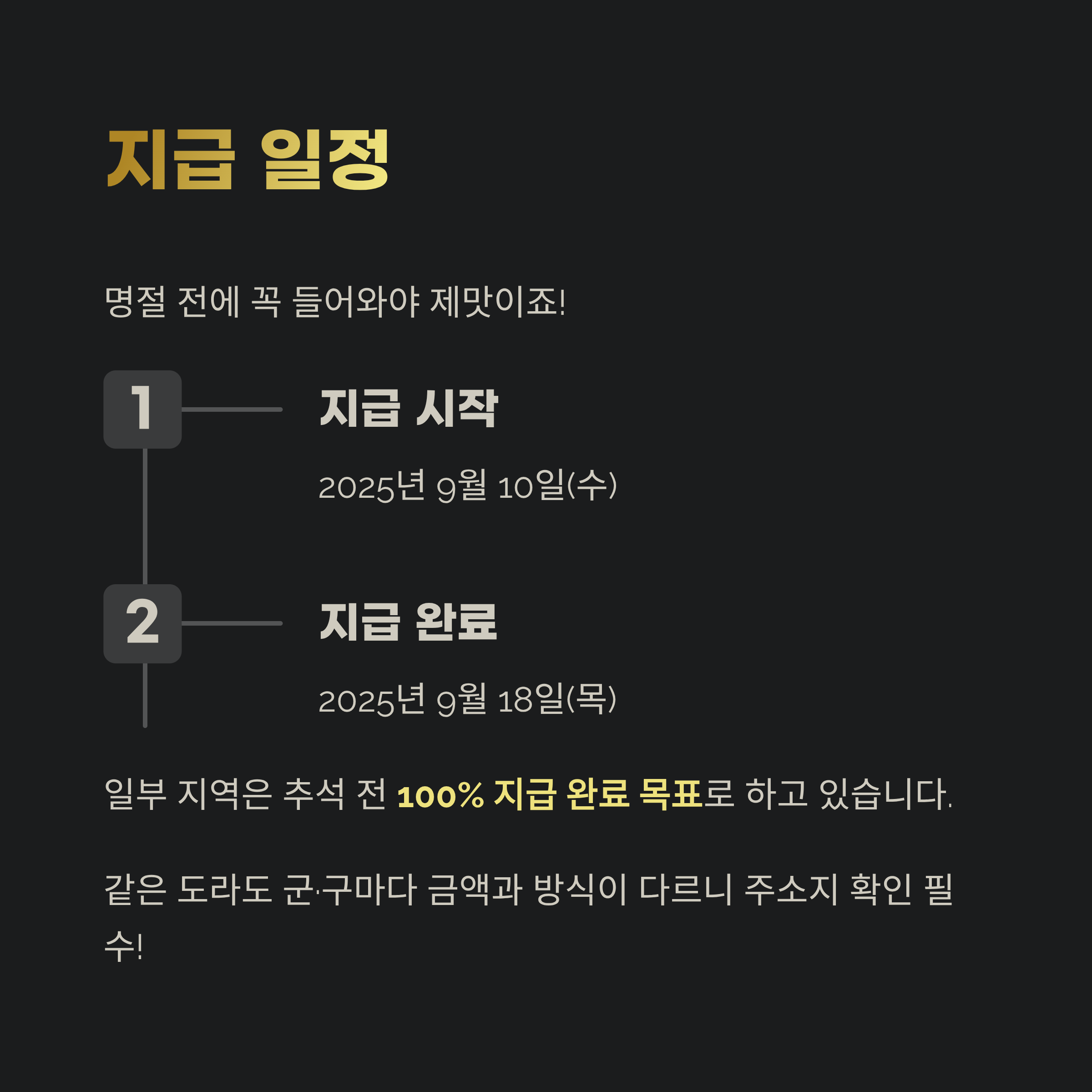 - 지급 시기: 2025년 9월 10일(수) ~ 9월 18일(목)