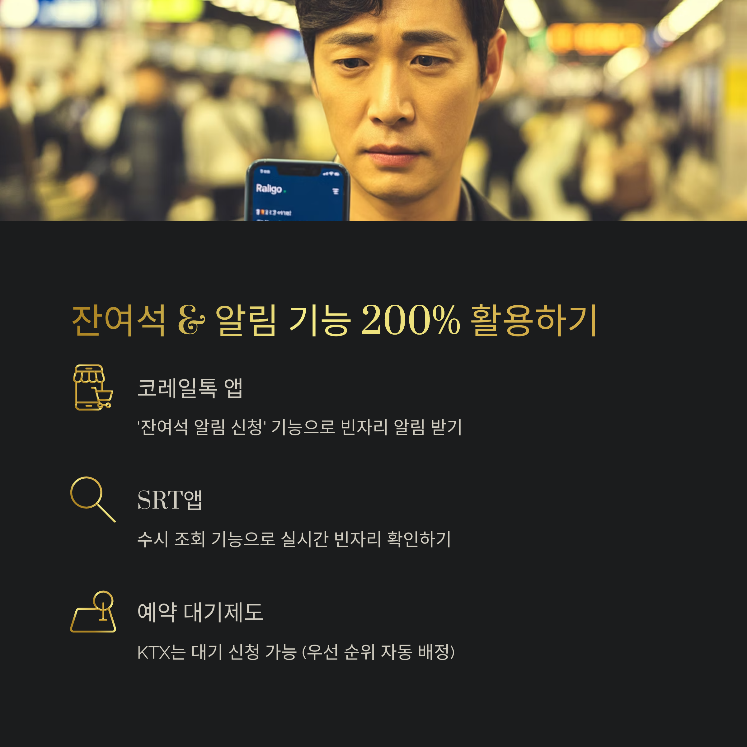 - 코레일톡 앱: ‘잔여석 알림 신청’ 가능