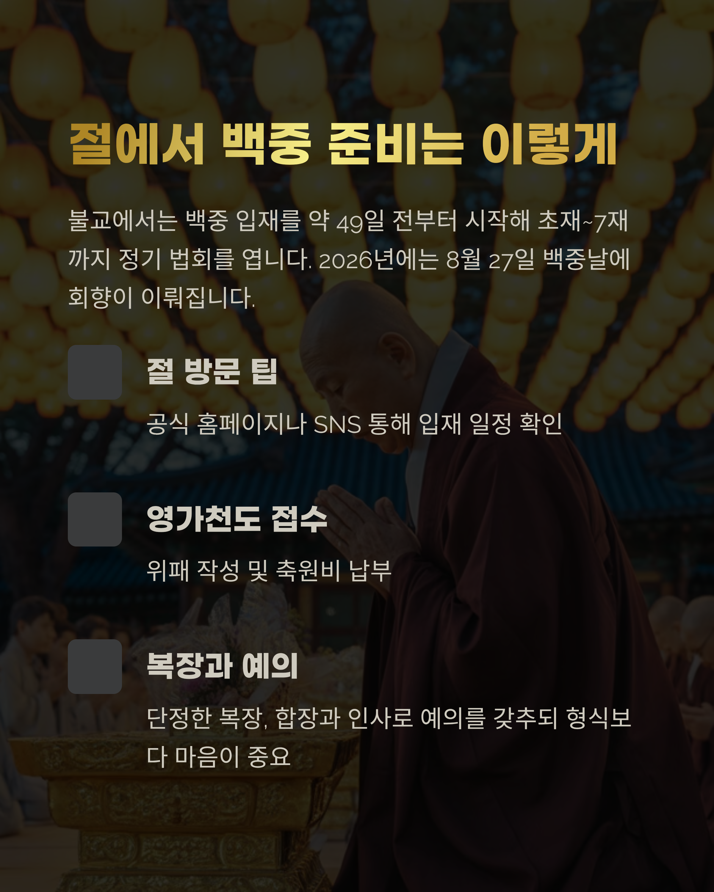 불교에서는 **백중 입재(기도 시작)**를 약 49일 전부터 시작해