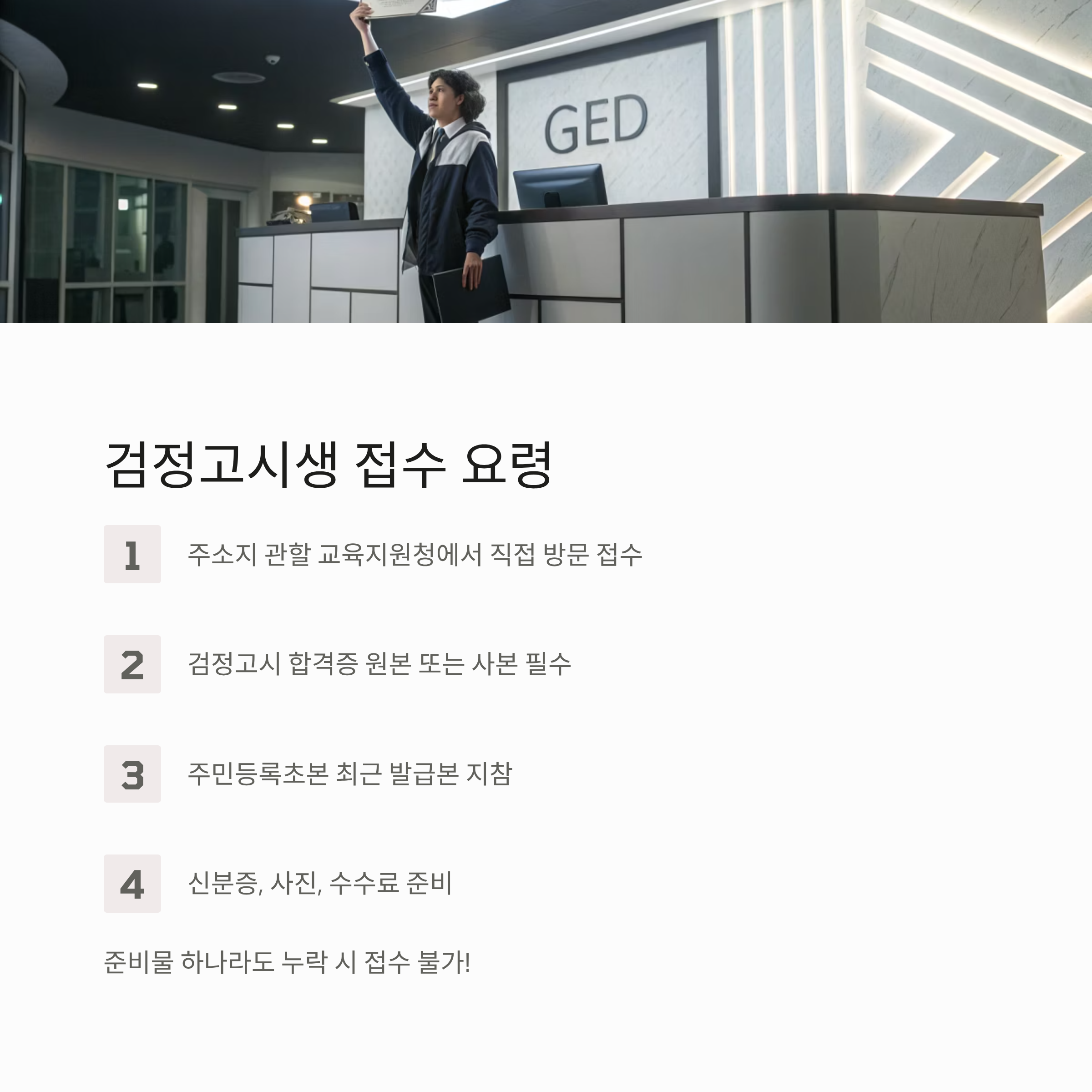 준비물 중 하나라도 누락될 경우 접수가 거부될 수 있으므로 반드시 사전 점검이 필요합니다.