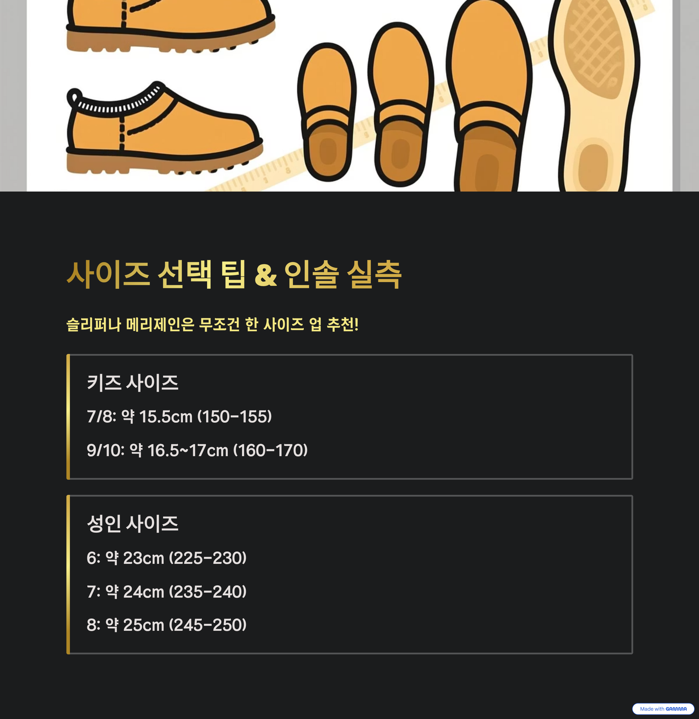사이즈 선택 팁 & 인솔 실측