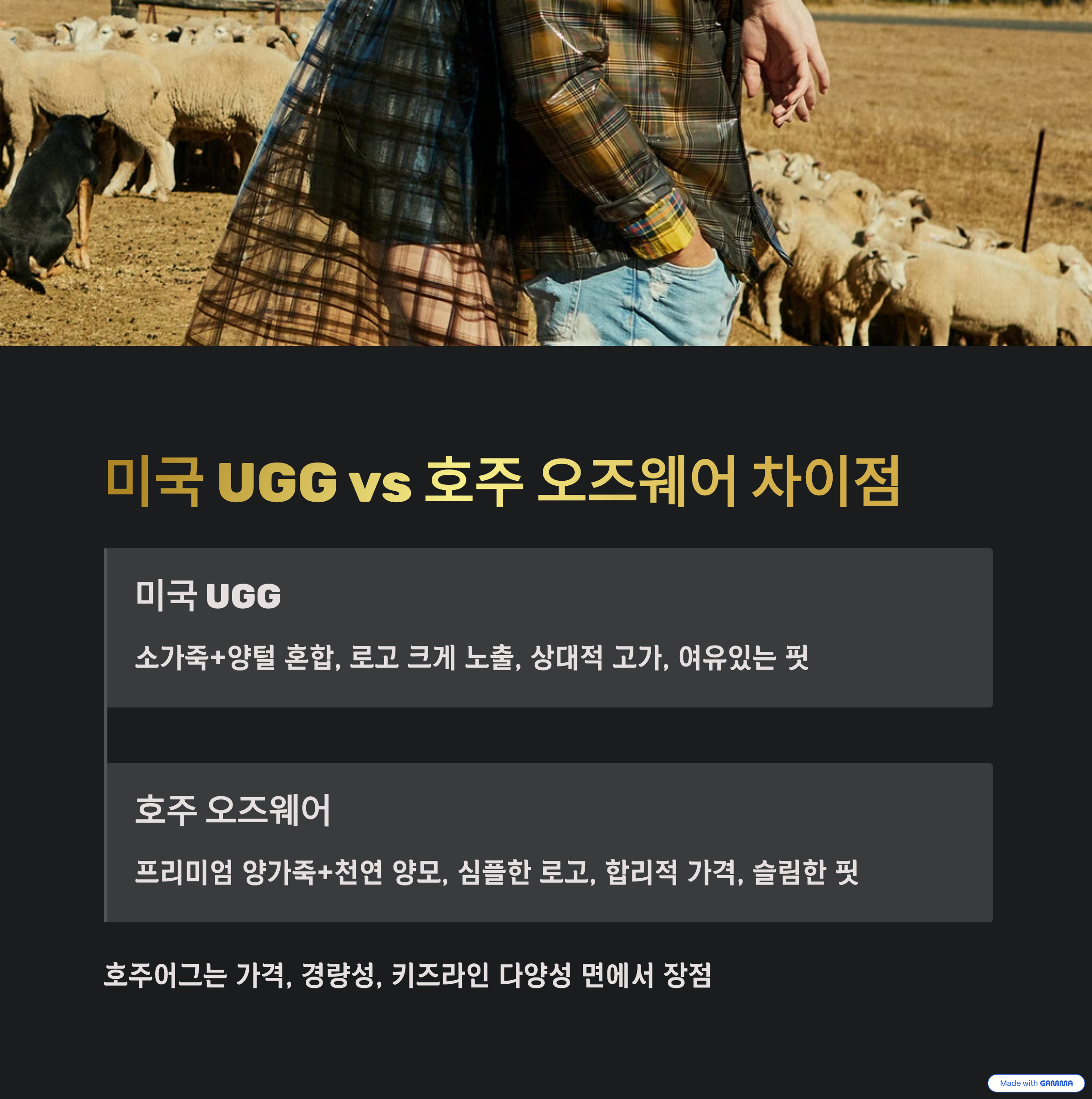 | 항목 | 미국 UGG | 호주 오즈웨어 |