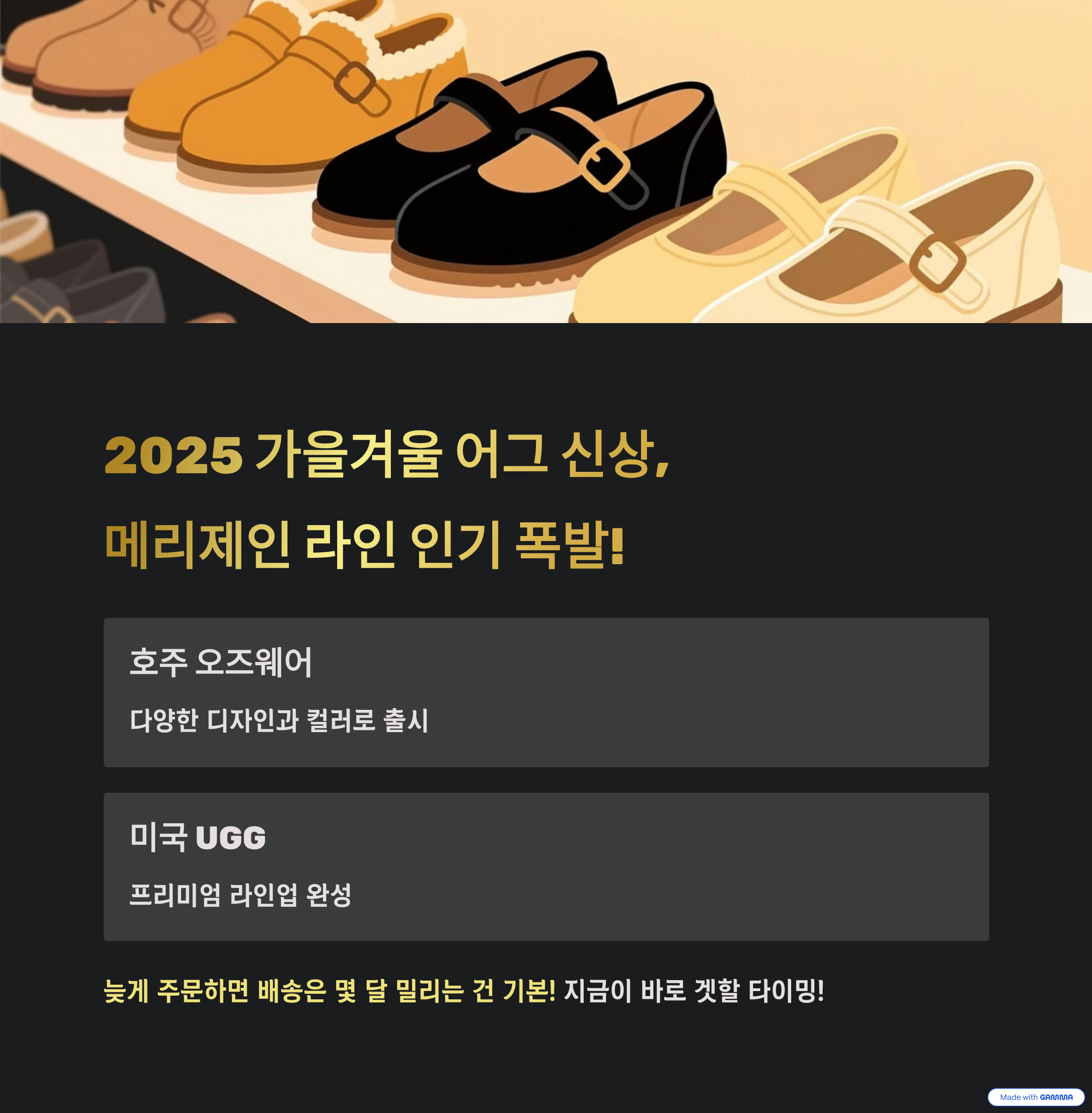2025년 가을겨울 시즌, 어그 신상이 진짜 미쳤습니다. 특히 메리제인 어그 라인들이 인기 절정인데요. 호주산 오즈웨어부터 미국 UGG 브랜드까지 다양한 디자인과 컬러, 사이즈로 출시되어 지금이 바로 겟할 타이밍입니다. 늦게 주문하면 배송은 몇 달 밀리는 건 기본! 오늘 포스팅에서는 인기템 ‘메리제인 어그’를 중심으로 25’FW 추천 어그 라인업, 브랜드 차이, 사이즈팁까지 한눈에 볼 수 있도록 정리해 드릴게요.