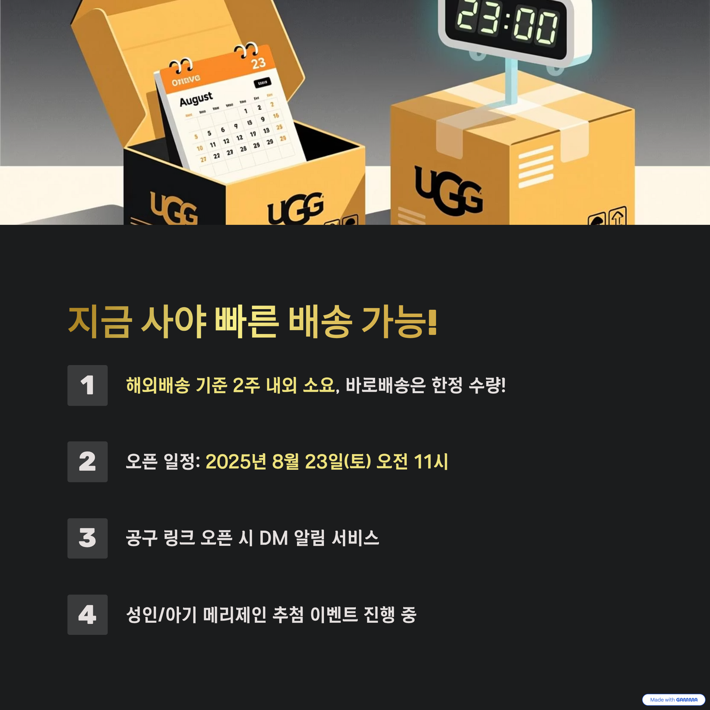 오픈 일정은 2025년 8월 23일(토) 오전 11시부터 시작.
