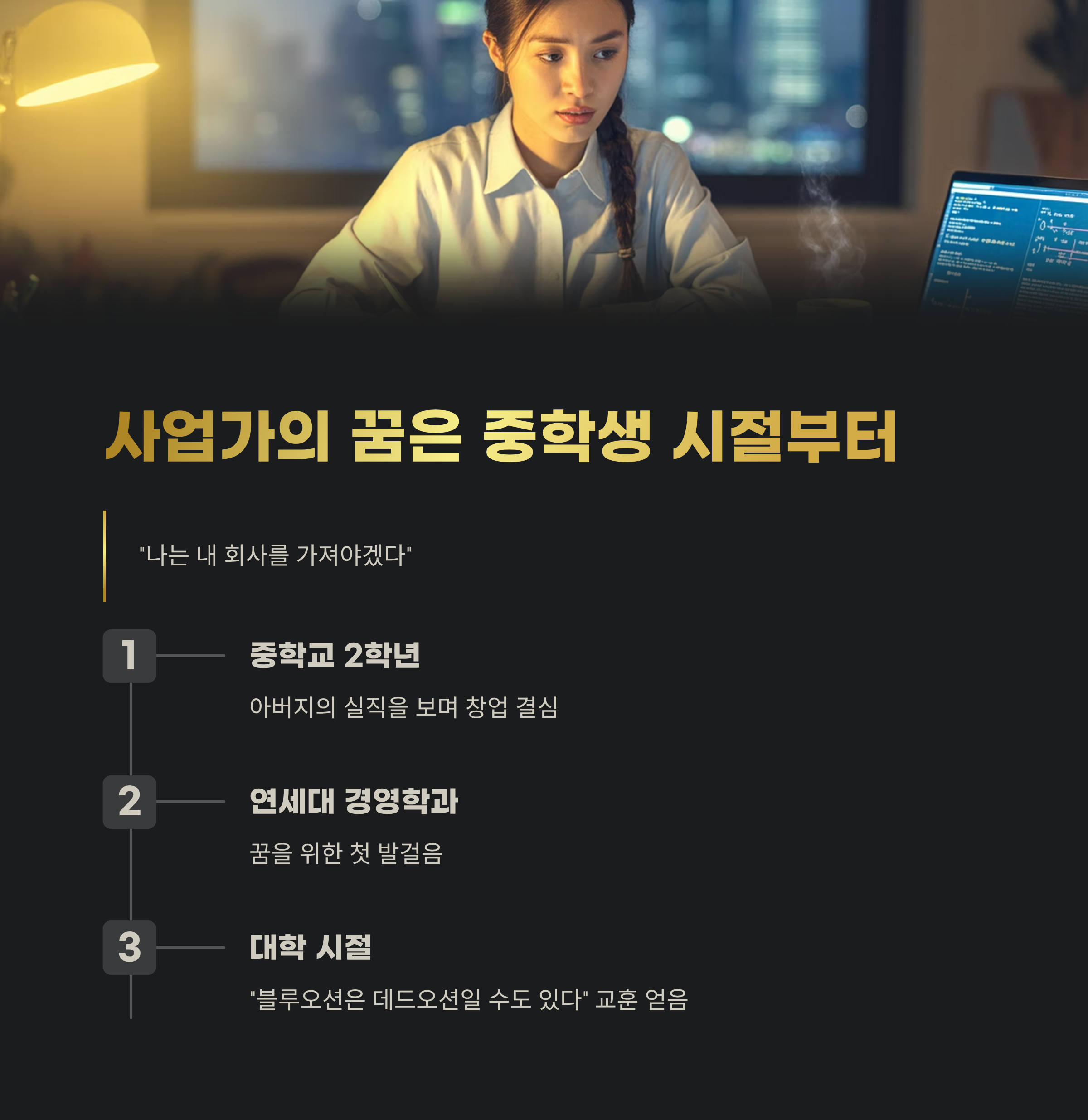사업가의 꿈은 중학생 시절부터 시작됐다