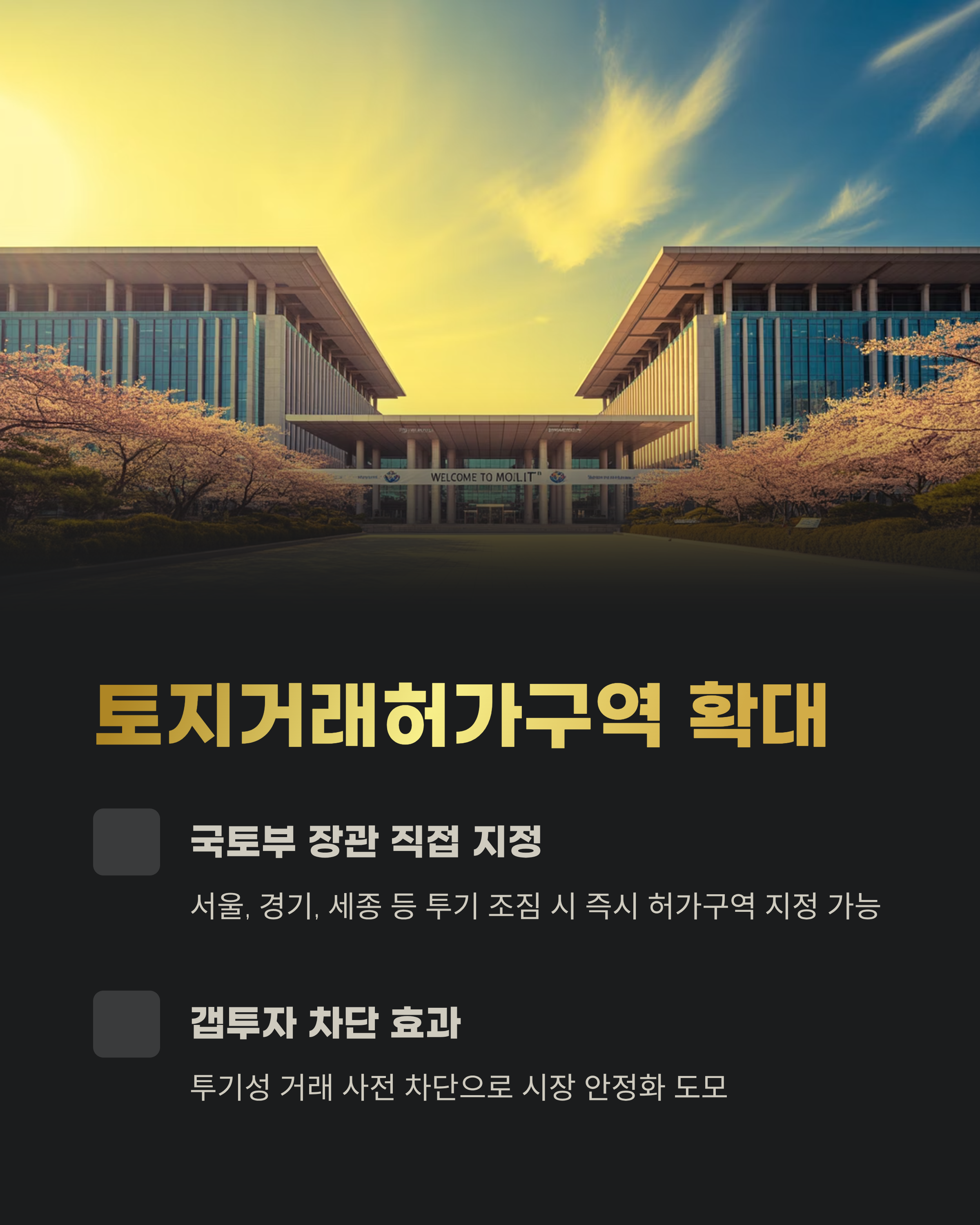 이제 토지거래허가구역 지정 권한이 국토부 장관에게도 주어집니다. 서울, 경기, 세종 등 규제 가능성이 있는 지역에서 투기 조짐이 보이면 바로 허가구역 지정이 가능해져, 갭투자 등 투기성 거래 차단 효과가 기대됩니다.