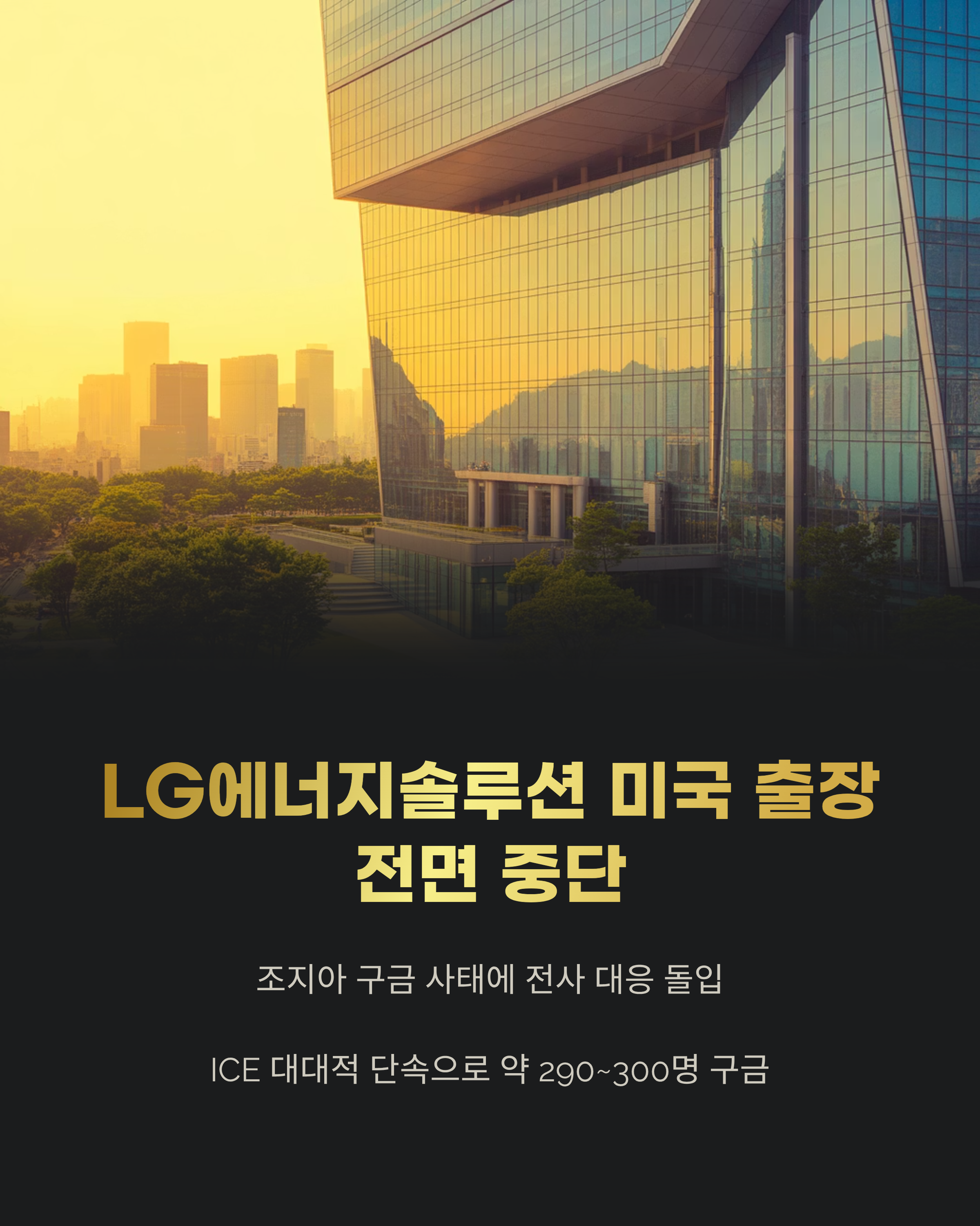 LG에너지솔루션이 미국 조지아주 합작 배터리 공장 현장에서 발생한 대규모 이민 단속 사태와 관련해 전 임직원의 미국 출장 전면 중단을 결정하고, 최고인사책임자를 현장에 급파하는 등 초비상 대응에 나섰습니다.
