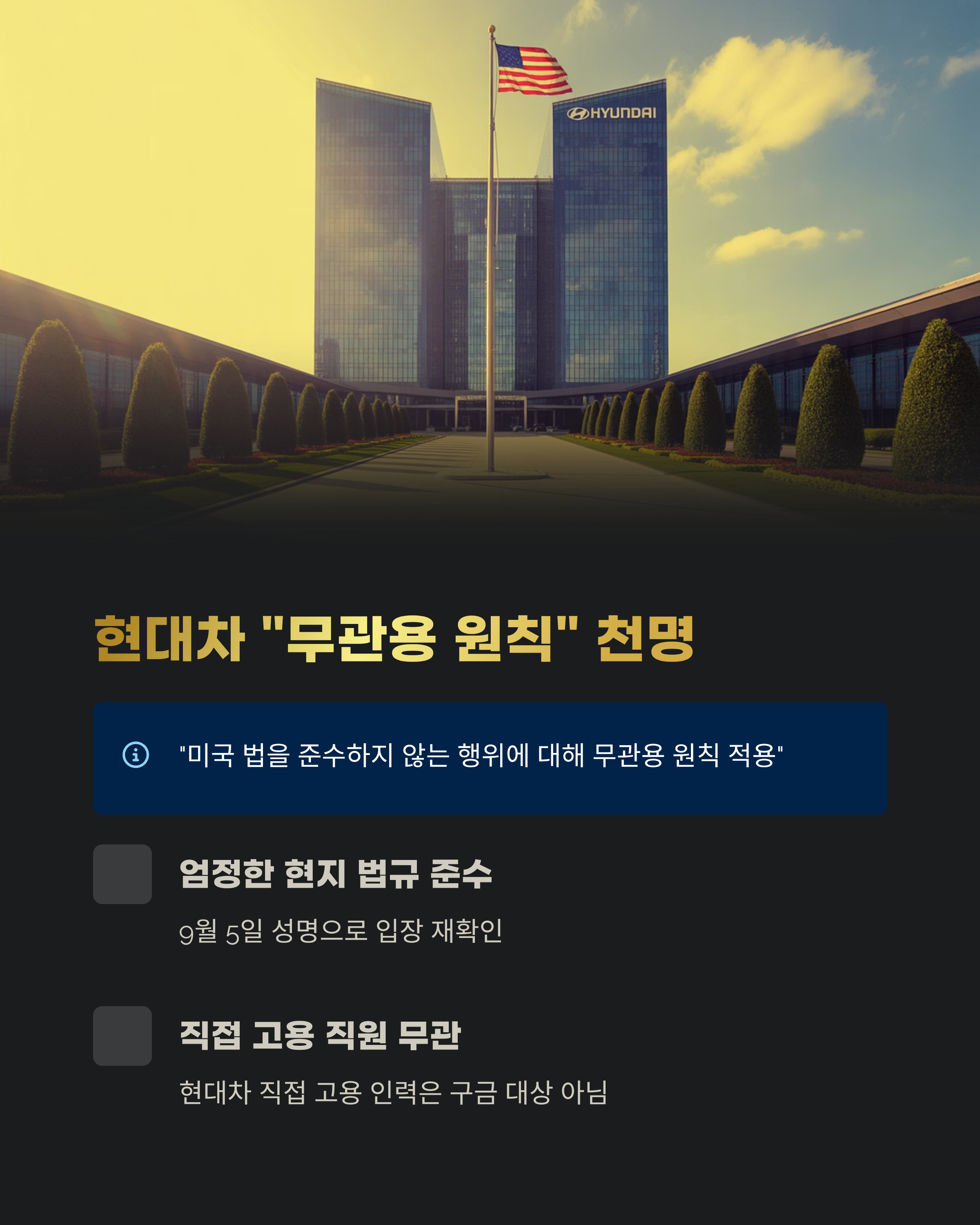 “현대차는 미국 법을 준수하지 않는 행위에 대해 무관용 원칙을 적용할 것”이라며